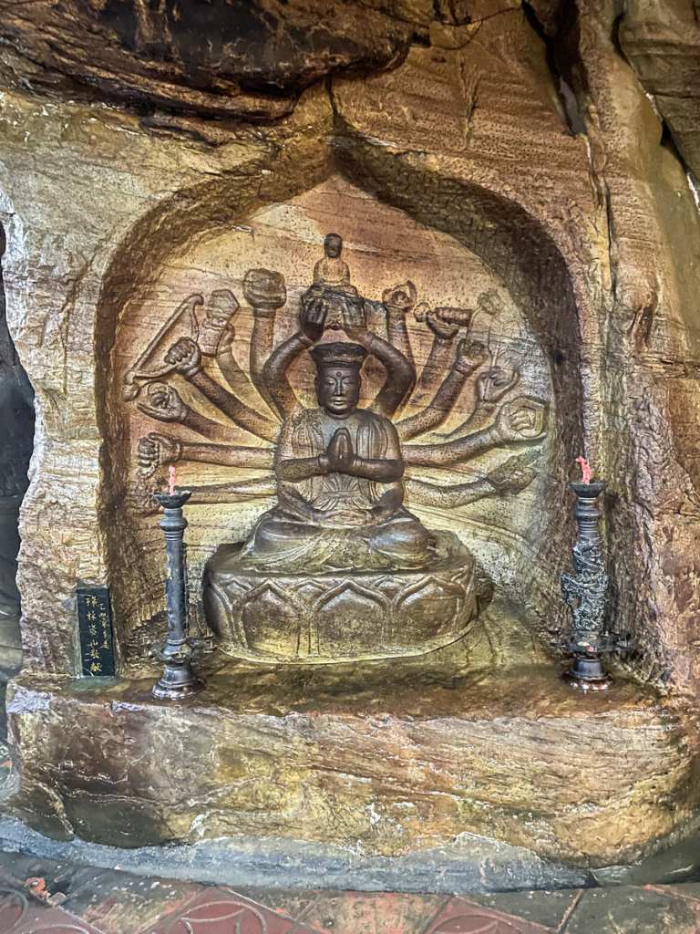 A many-armed bodhisattva deep in the cave’s rear altar hall.