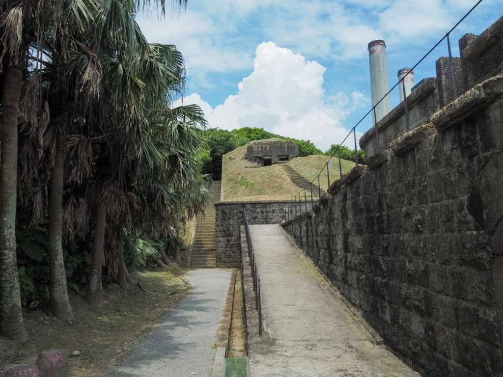 Just as you approach the bottom of the steps, you’ll find yourself approaching Baimiweng Fort (白米甕砲臺, also known as Baimiweng Battery and Holland Castle.