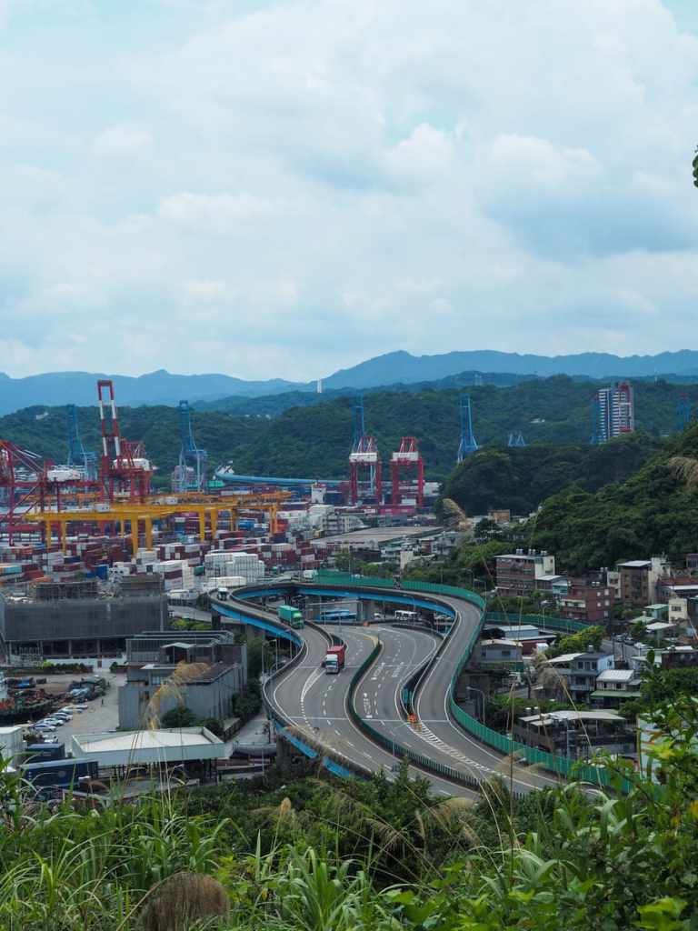 A break in the tree cover offers views over Provincial Highway 2F, a short spur road that allows lorries coming from Keelung Port to easily slip into Freeway No. 3.