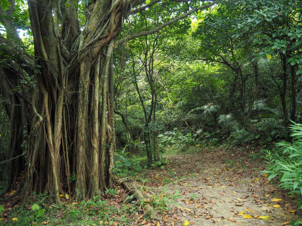 A small clearing beside the trail has been left so that hikers can pause and admire the tenacity of this banyan that’s somehow managed to grow bigger and stronger than most of the other trees on these seaward slopes.