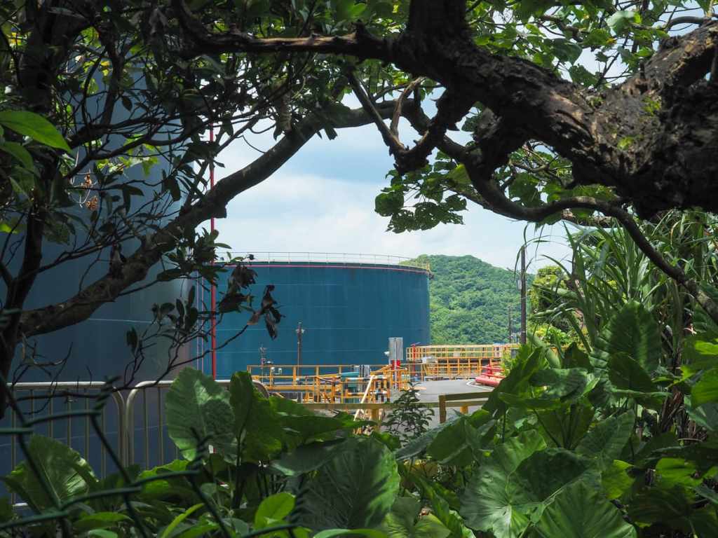 Through a mesh fence to the right, you can see some of the CPC Corporation’s storage tanks. From the trail, it feels like you’re surrounded by mountains, but in reality, this is just a couple of minutes away from the port by road.
