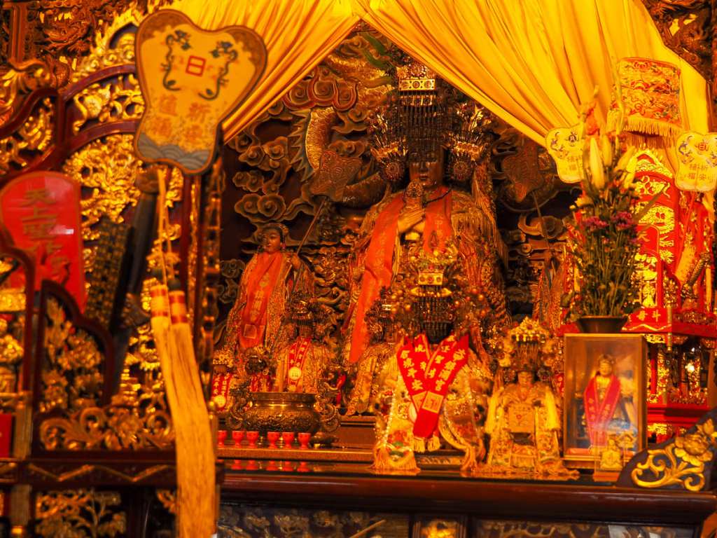 Inside, you’ll find several altars, but the central and grandest altar is dedicated to Mazu, goddess of the sea and patron saint of those who make their livings on the waves.