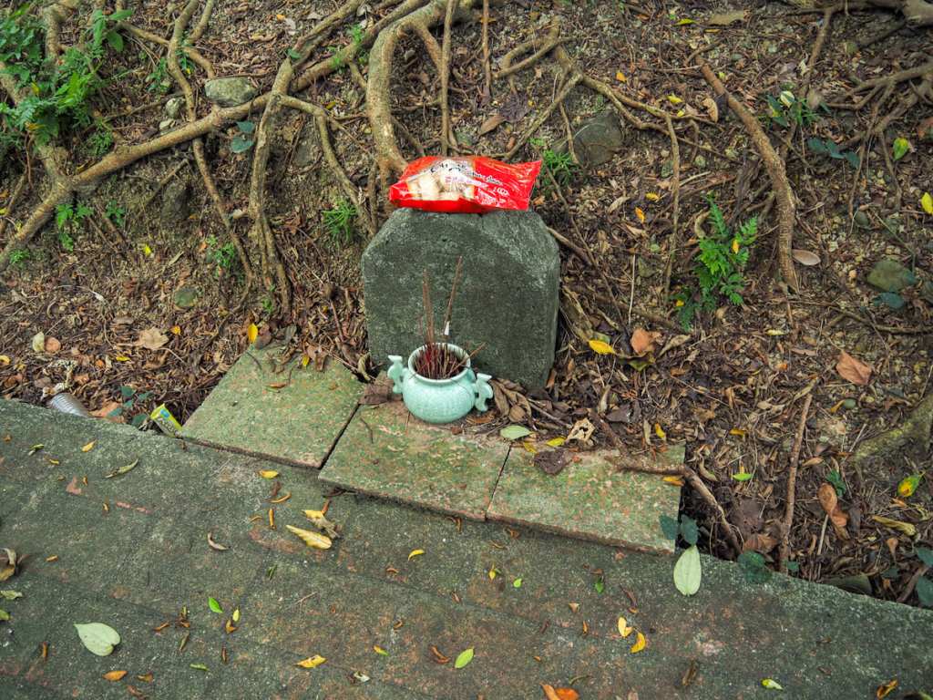 The park has a small gravestone that’s venerated with incense, cigarettes, and snacks, and it also has the closest view of the port that you’re going to get.