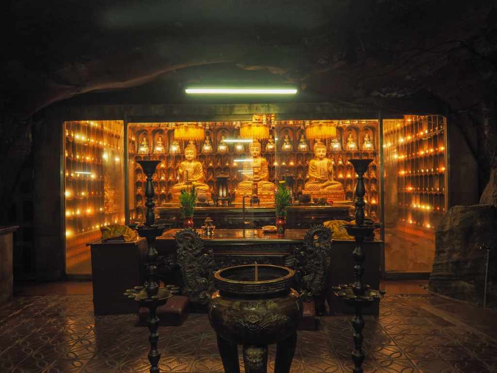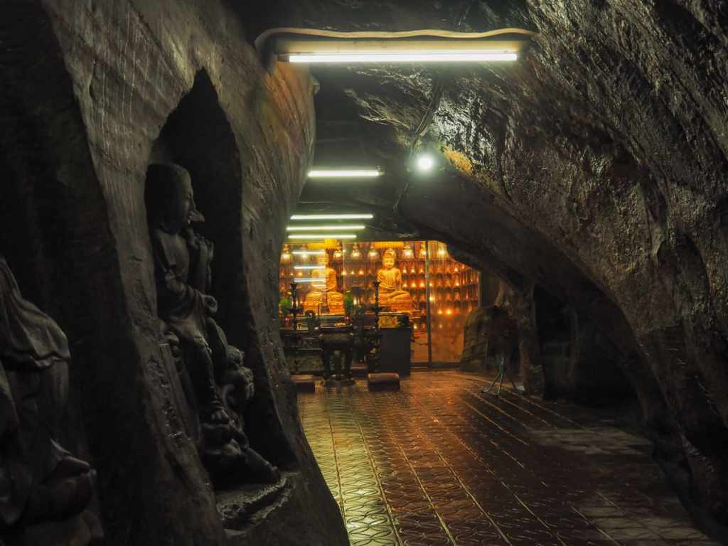 Stepping into the temple, you’re immediately greeted by Budai, the Laughing Buddha, and behind that, a second altar holds Guanyin. Visiting on an energy-sapping hot summer’s day, it was a relief to step into the cool, lily-scented air of the caves.
