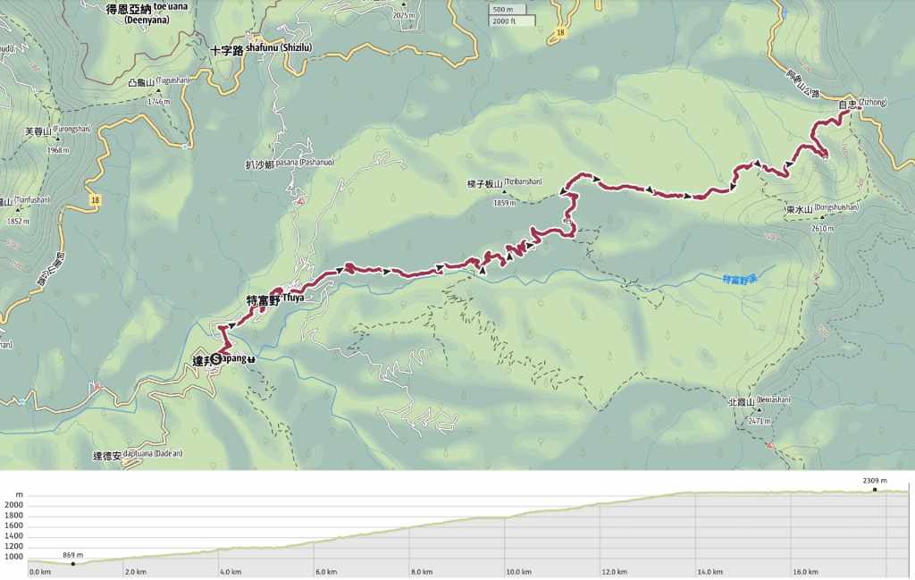 Accommodation near the Tefuye Trailhead – There isn’t any accommodation near the Tefuye Trailhead. Teresa and I slept in the car by the side of the road here, but that won’t be an option for most people. If you haven’t been stealth camping the whole way, there are basically two courses of action you can take. The first would be to find a hotel that’s willing to do a pick-up and drop-off service. There are quite a few (pricier) options in Alishan National Forest Recreation Area and maybe one or two near Shizilu Station. The second possibility would be to walk (or hitchhike) 12 extra kilometres along the road to Dongpu Lodge (details on booking this in the next post). The road walking is part of the MSTW, so that would mean your next day is shorter.