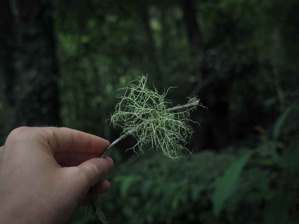 A patch of forest was wreathed in clouds. It must have been that way for a while because the mosses and draping lichens on the higher branches had caught so much moisture that it was like walking through a localised mini rain storm.