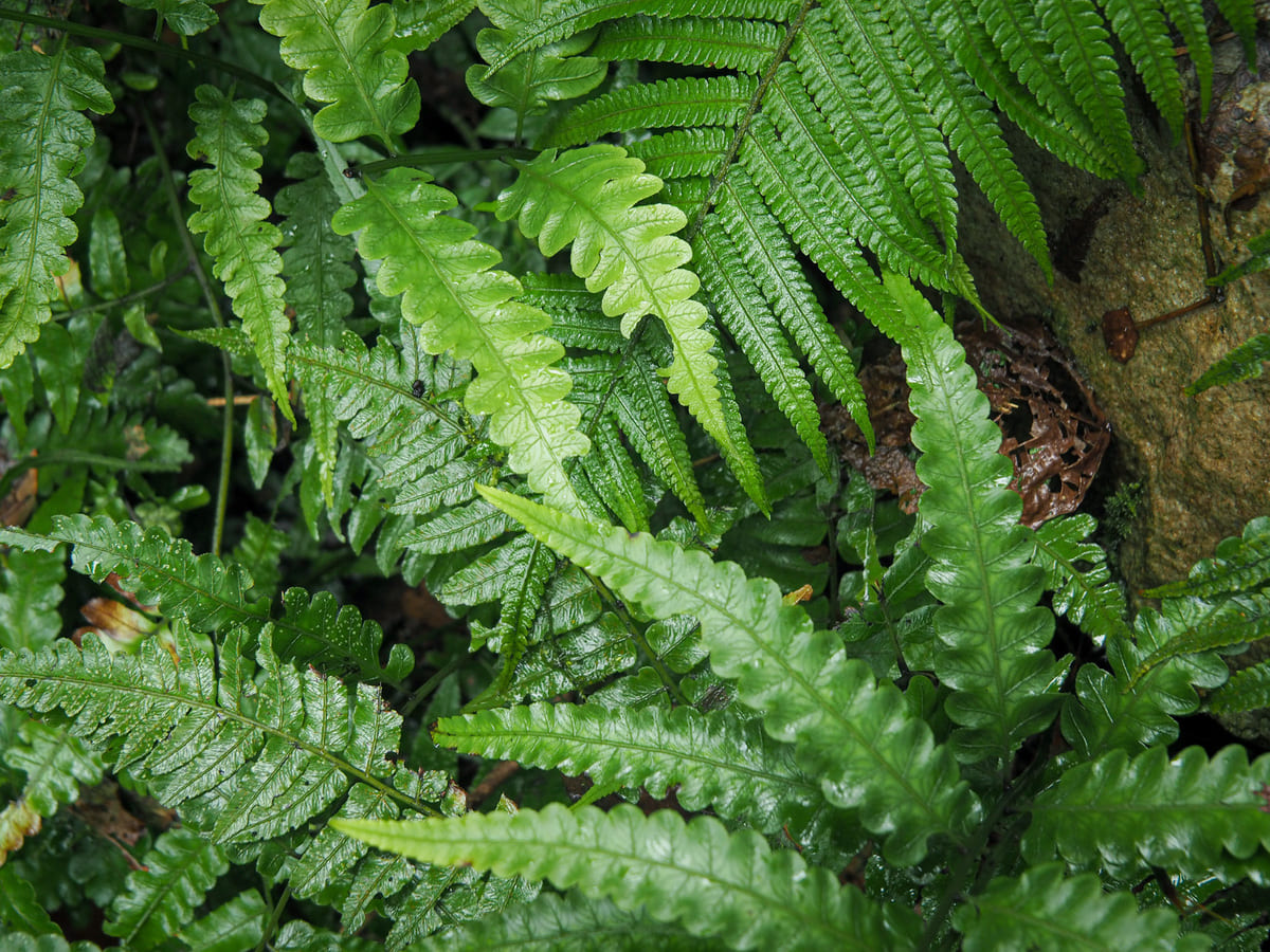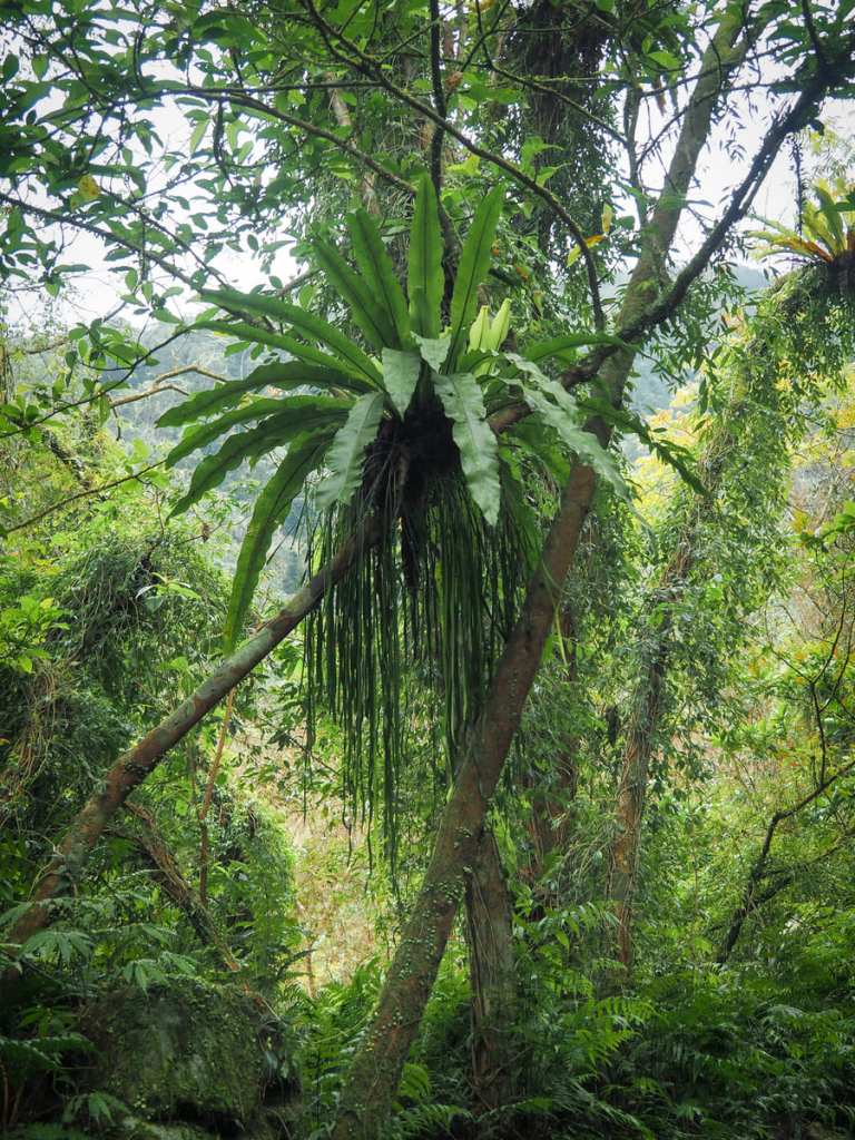 Shaggy birds nest ferns and trailing ribbon ferns are draped over every other branch, making the whole place feel decadently green.