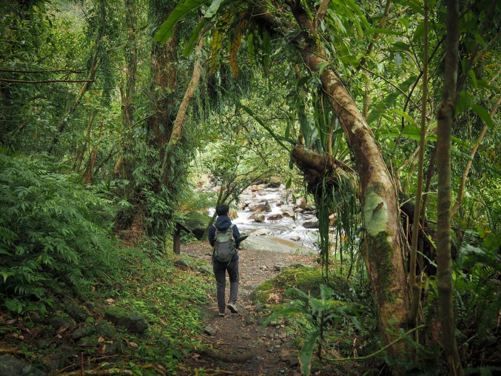 Google Maps address: The walk starts inland and upstream from the small Tayal village of Songluo (a popular pausing point on the way to Taipingshan). The trail’s official carpark is about a 30-minute walk from the trailhead. If you visit midweek and are confident driving your vehicle along rough single-lane tracks, you can probably drive up to park by the water plant, but don’t even think about it on weekends.