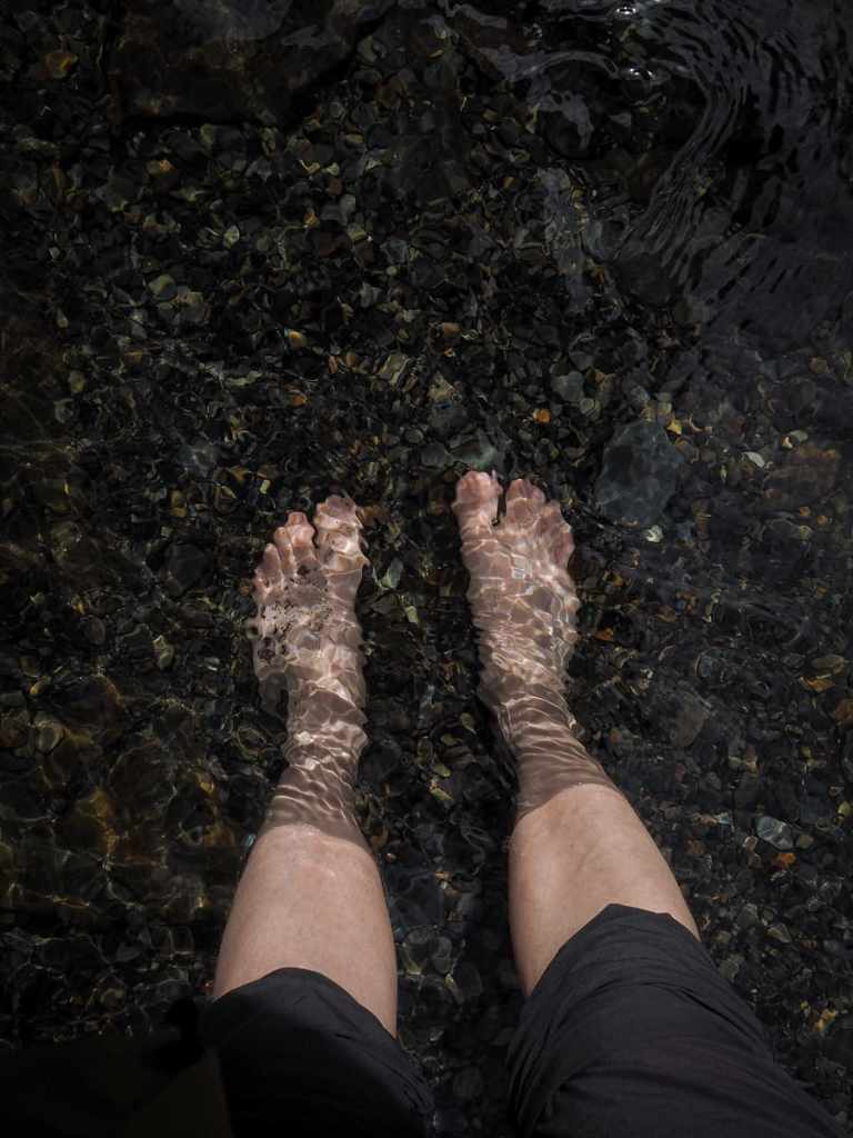 Teresa observed my paddling from a patch of sun on a rock and after I’d iced my toes, we picked up and headed back down the same way we’d come.