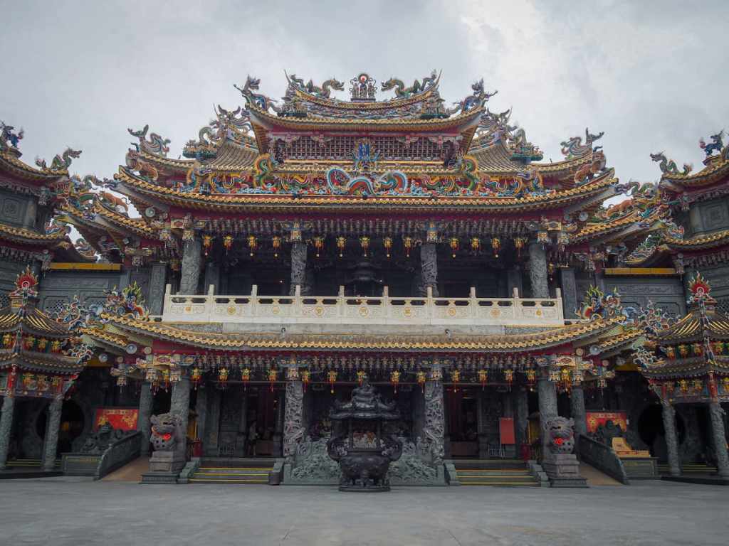 Technically speaking, the walk starts at Houshanpi MRT station, but — aside from a brief, air-conditioned detour via a coffee shop — the walk down Dadao Road to the trailhead is pretty uneventful. Once you cross over Fude Street, look out for the bright red pillars of Songshan Fengtian Temple. Turn right through an archway and follow the steps up and around until you arrive in front of the temple.