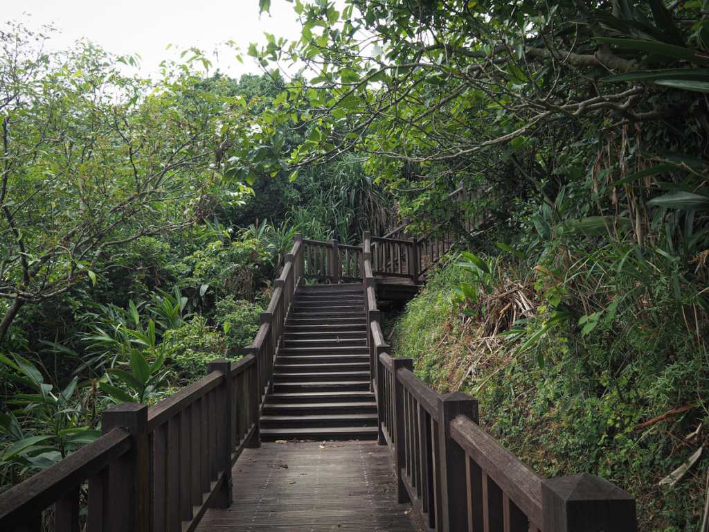 Starting from the coastal village of Nanya, we headed inland past Nanxin Temple (南新宮) and past a smattering of shops selling shaved ice and noodles, bound for Mount Nanzilin Trail (南子吝步道). I was last in the area when I revisited Stegosaurus Ridge. At that time, Mount Nanzilin Trail was closed for maintenance, so I had to detour through farmland, but it has reopened, and this has become the official start of the Stegosaurus Ridge Trail (or rather it has for those who don’t feel comfortable trespassing).