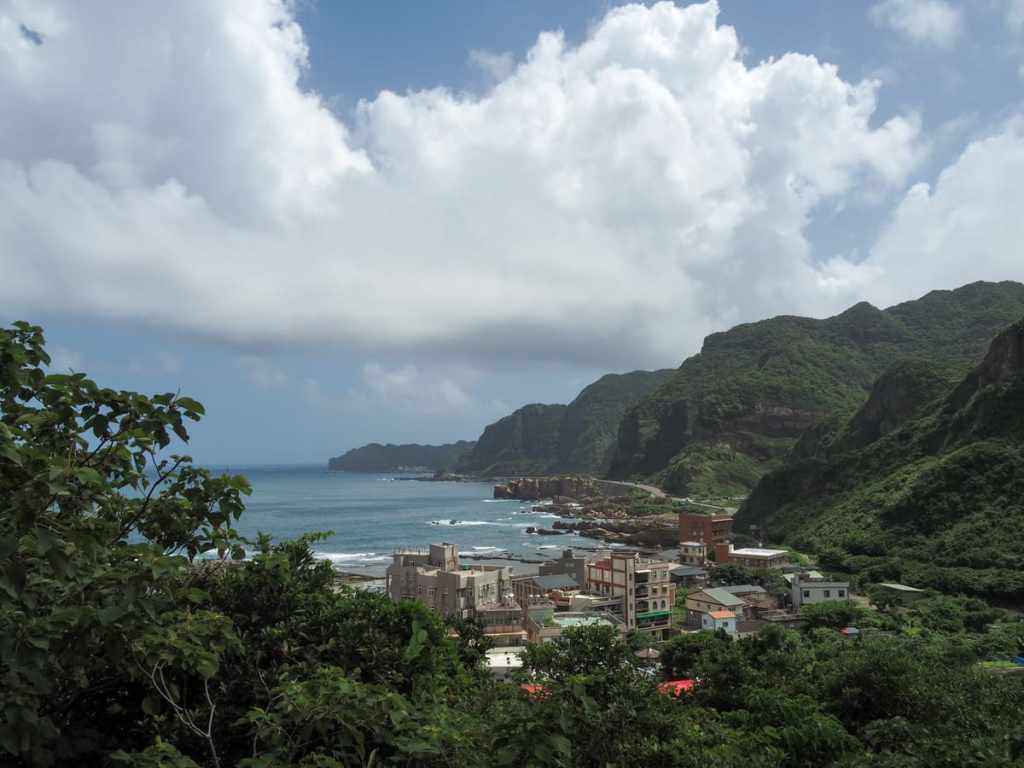 A platform beside the trail offers a quick chance for a breather as you look back down towards Nanya and the rocky coastline.