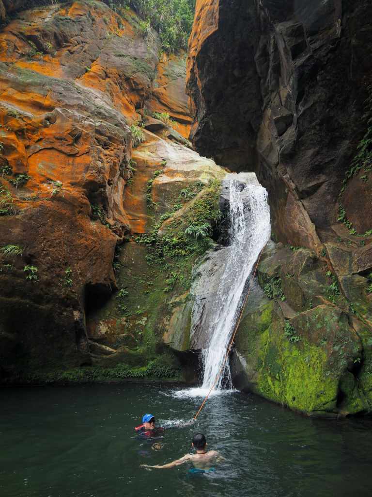 Once you clear the obstacle in the previous photo, it’s just another few minutes until you reach the Dagui Waterfall, the location that serves as the destination and turnaround spot for this east version of the trace. (Some people push further up, but since neither of us is an experienced tracer, we were content to conclude our journey here.)