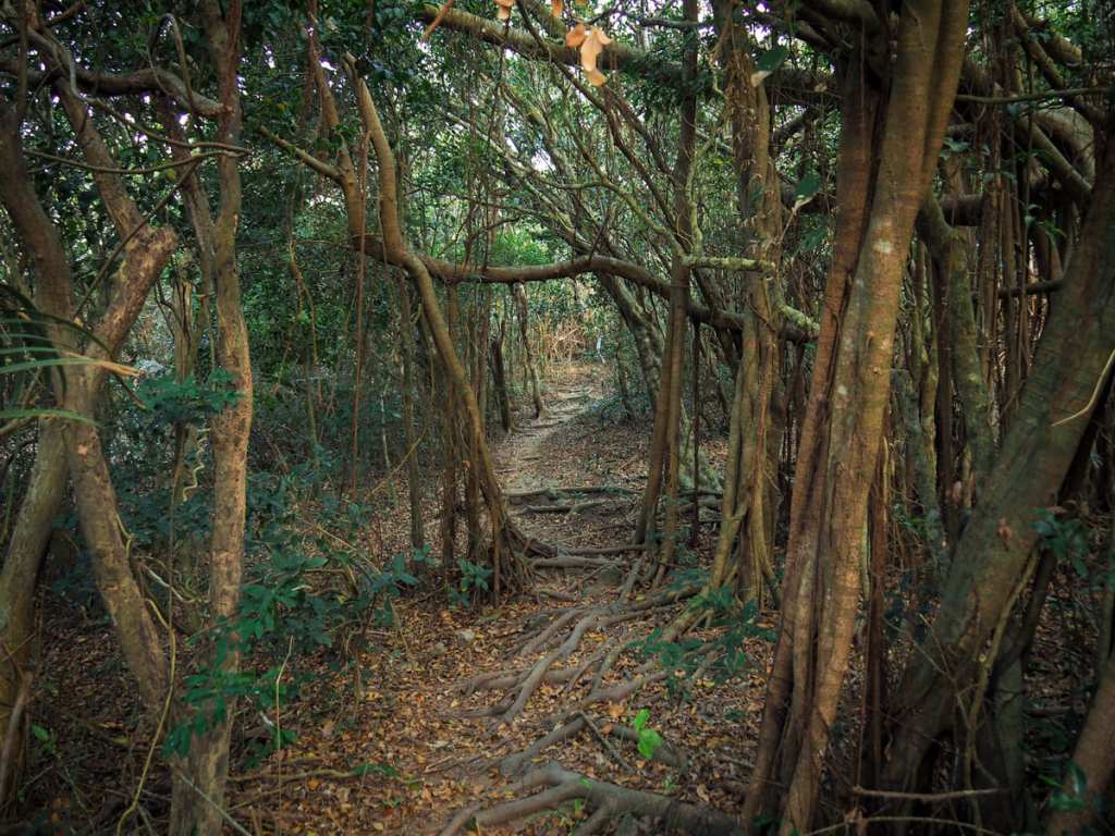 有一段特別美的路段長滿了糾纏垂掛的榕樹氣根。