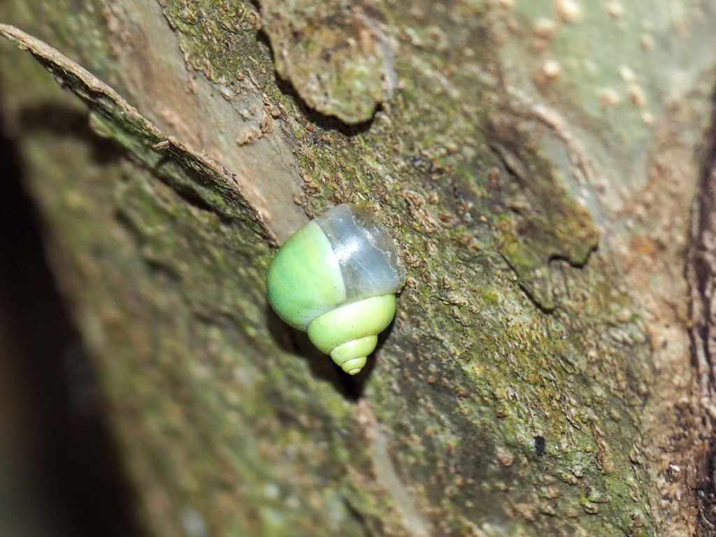 這隻攀附在樹邊的亮綠色蝸牛吸引了我的注意。(我想應該是琉璃蝸牛。)