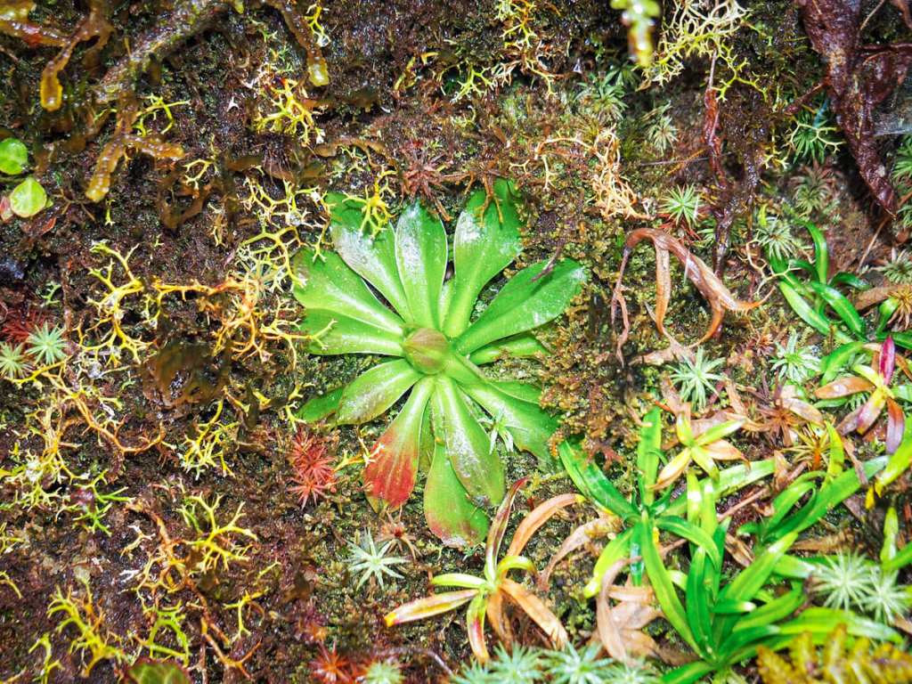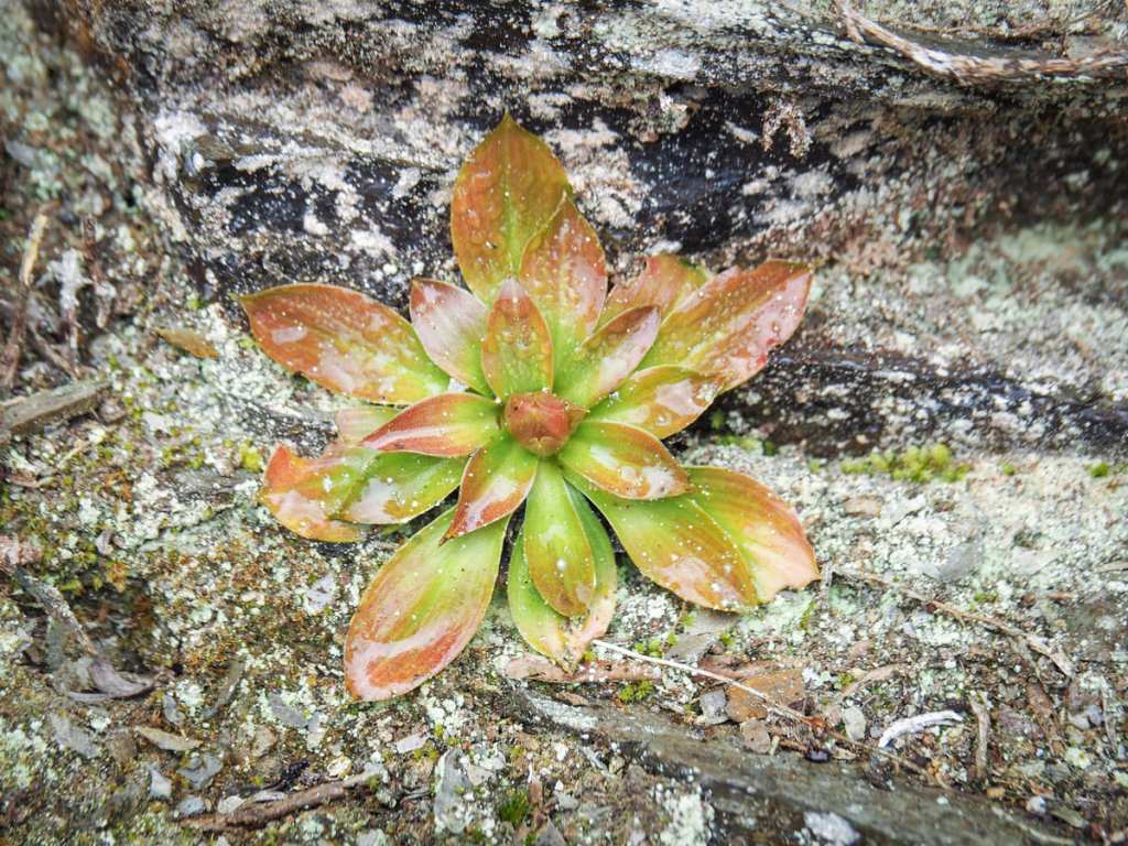 Plants growing on a rock face beside the trail.
