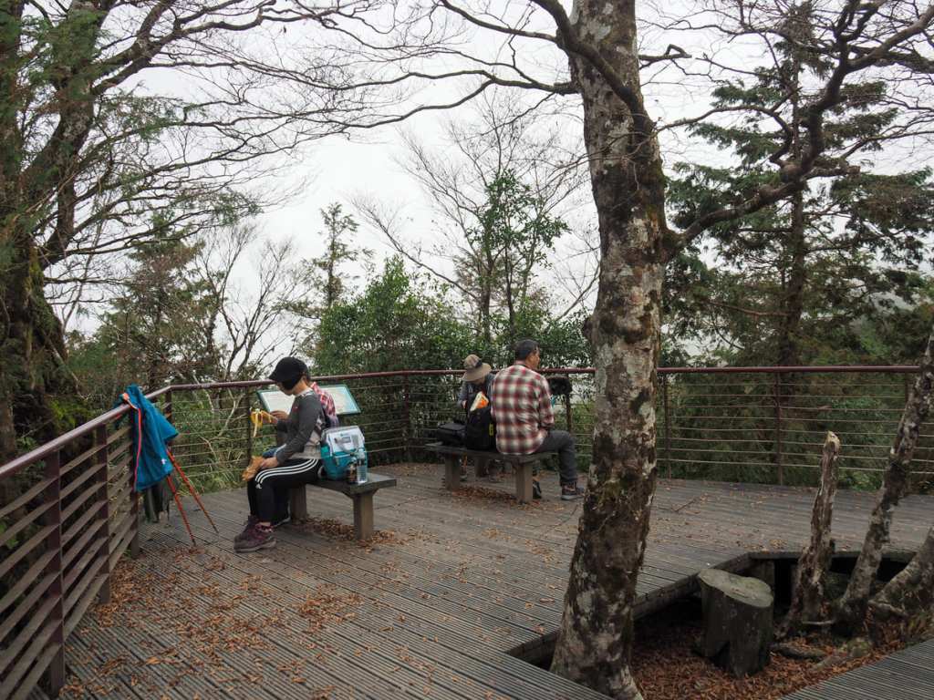 …you arrive at the topmost endpoint of the walk. In actuality, a trail does continue from here. The name given on the signage that describes it is “Yapulasi Mountain Track” (亞普拉塞山徑). I’m not sure why “mountain track” is used instead of “historic trail” because this is one of the old trade routes used by the Tayal (the tribe’s preferred spelling, although the government recognises the name “Atayal”) tribespeople. There are a few seats at the top, but I’d left Teresa behind talking to her customer (when you’re self-employed, even a mountain trail can be your office), so I rested just a minute or two before turning around to go and find her.
