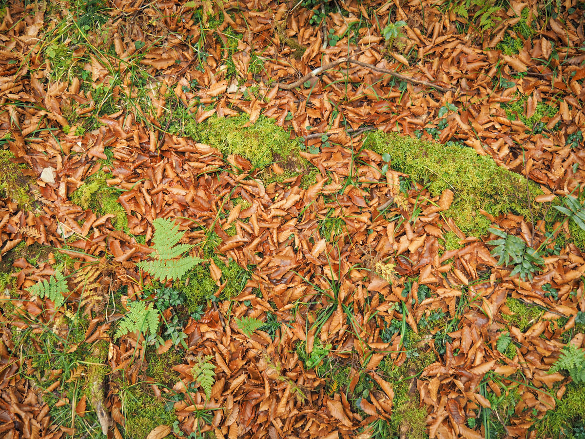 Much of the trail along the first 2.3km has a kind of raised walkway in the form of these sections of log with metal treads hammered into them. The metal has been worked into a pattern that’s meant to resemble the shape of veins in beech leaves.