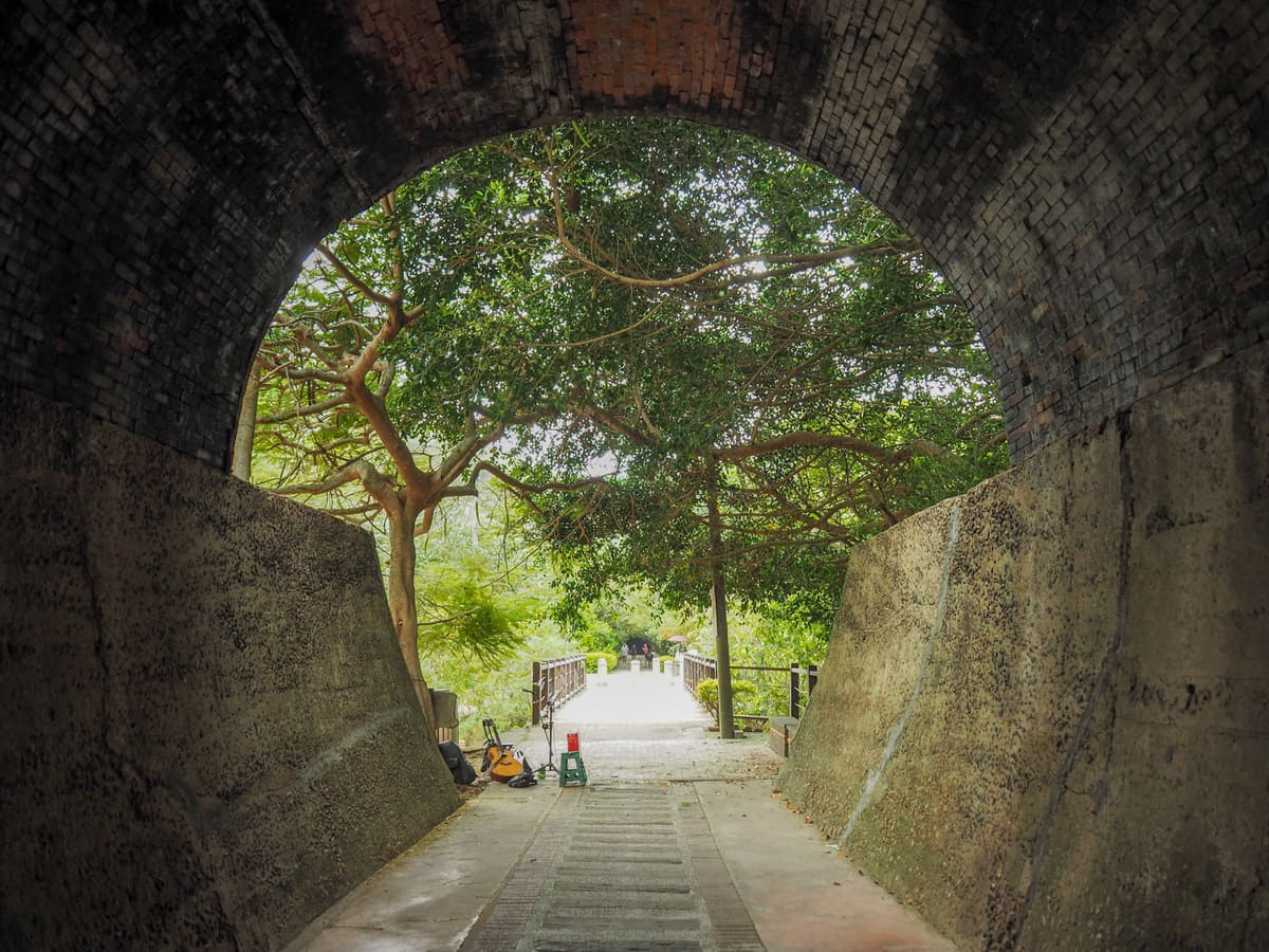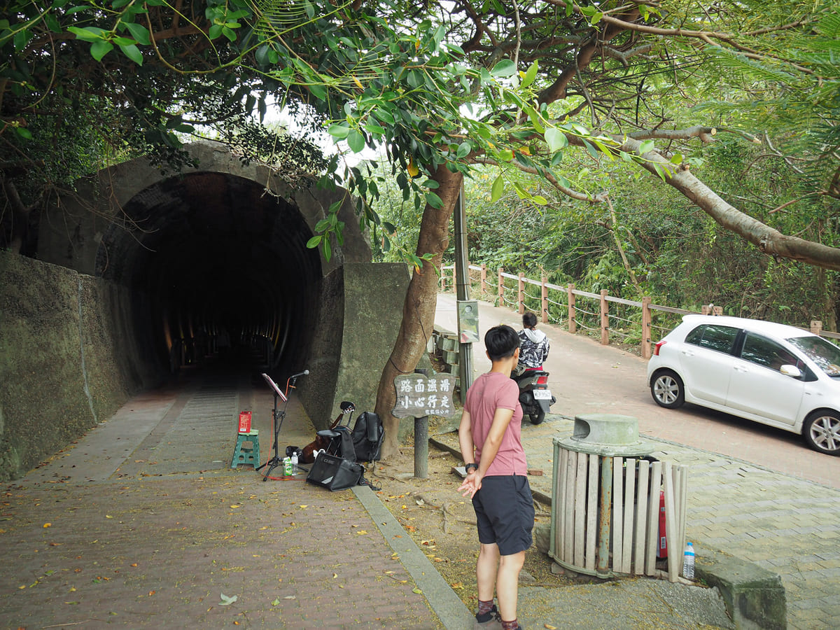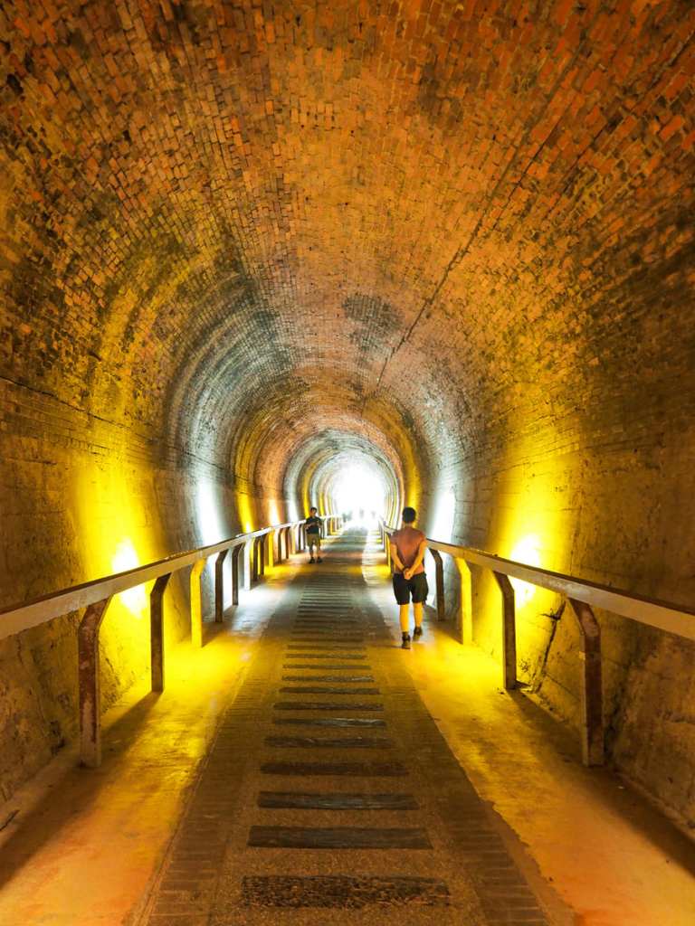 The tunnel has been decorated somewhat artlessly with coloured lights. I prefered the second half, which was just yellow and white, but I guess I’m maybe not the target audience for this type of tourist spot. (For an example of an old railway tunnel that has been excellently done, check out the beautifully treated Sandiaoling Tunnel. And since Taiwan seems to have a lot of tunnels-turned-attractions, you can also enjoy one even more garishly lit than this on the Shen’ao Bikeway. )
