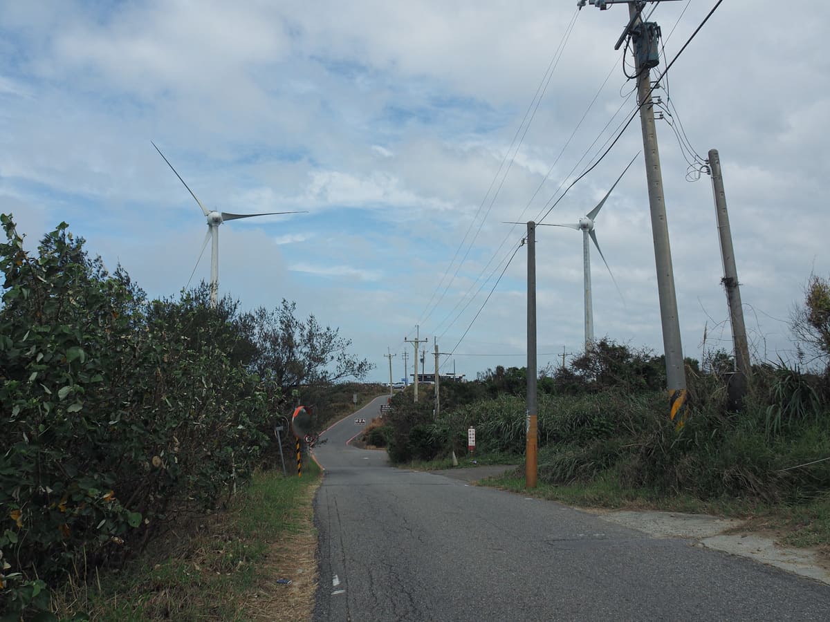 We passed a farm selling large bags of dusty sweet potatoes for $100 a pop, and soon after, we saw the turbines marking the end point of our journey.