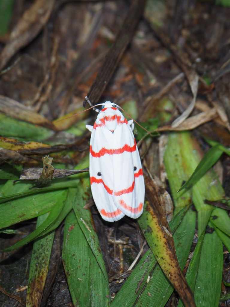 A snazzy Cyana hamata that stood out among the scenery’s greens, greys and browns.