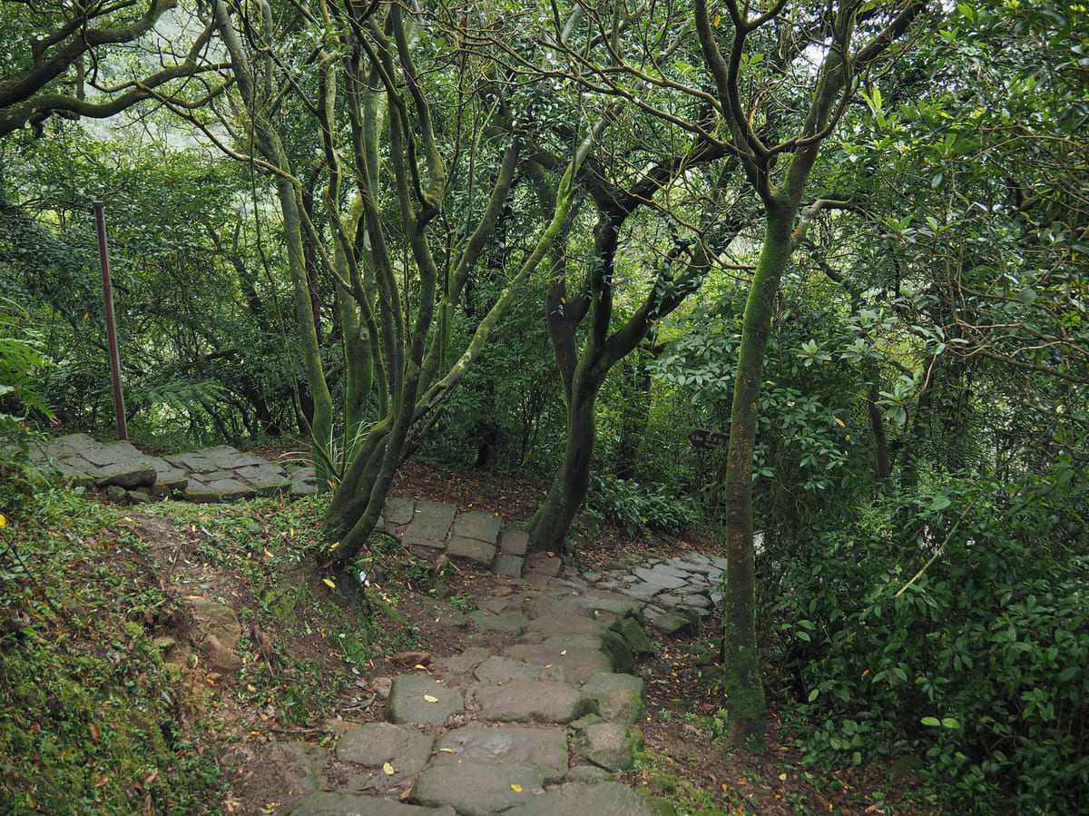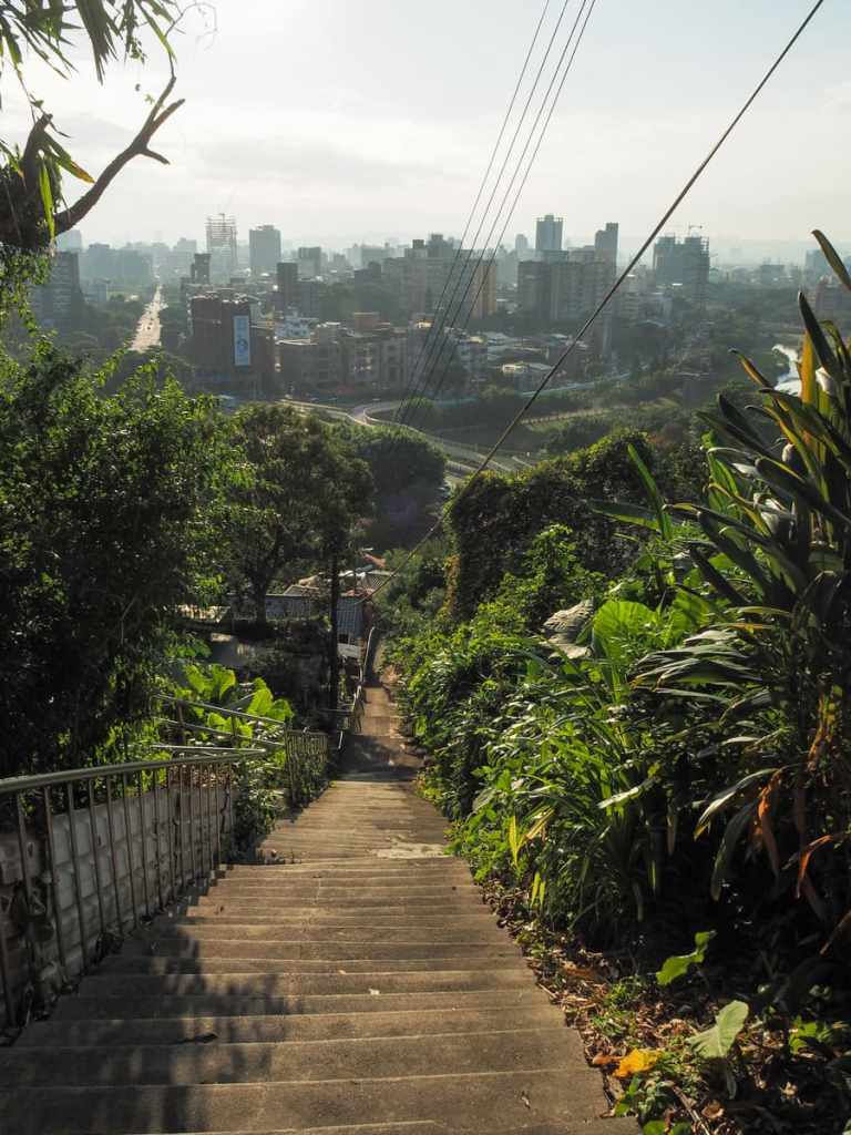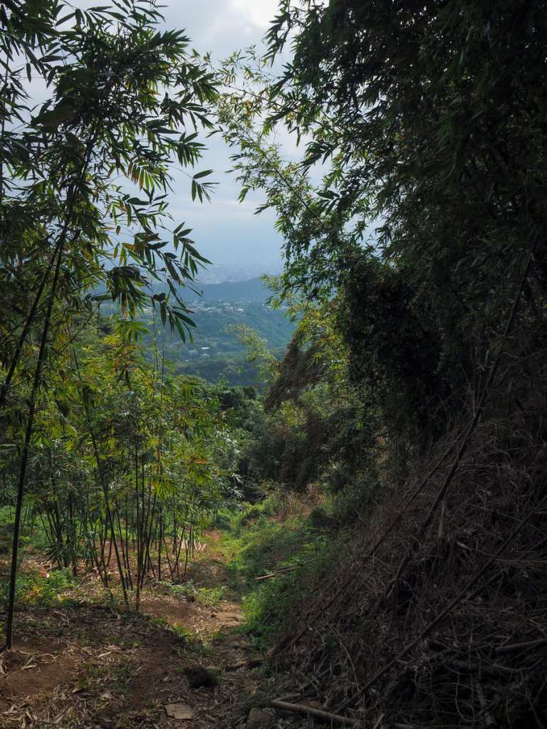 Just before you dive back into the trees, the walk gives up one of its very few views of the city. You can see the incinerator tower and/or restaurant over by Guandu, as well as Mount Guanyin rising in the distance. And that collection of buildings on the horizon to the left of Mount Guanyin is Linkou.