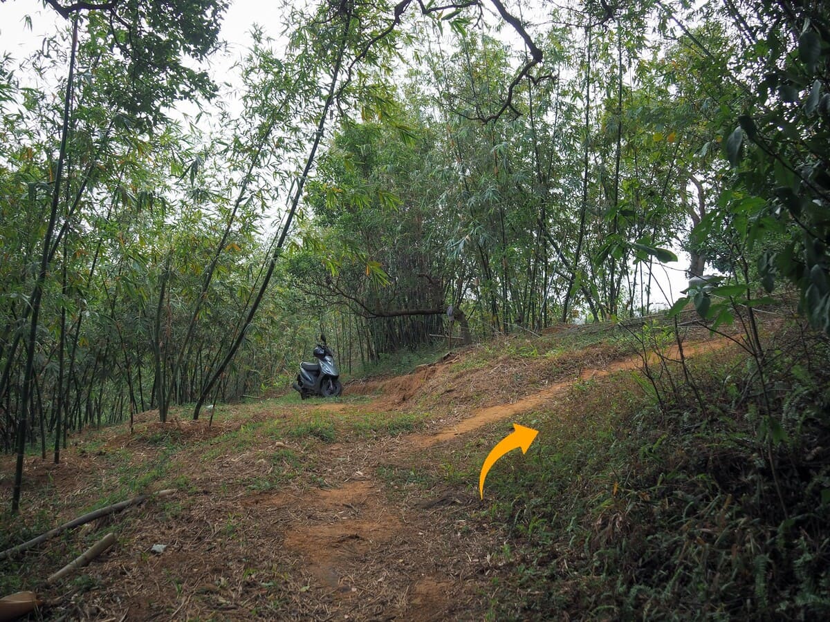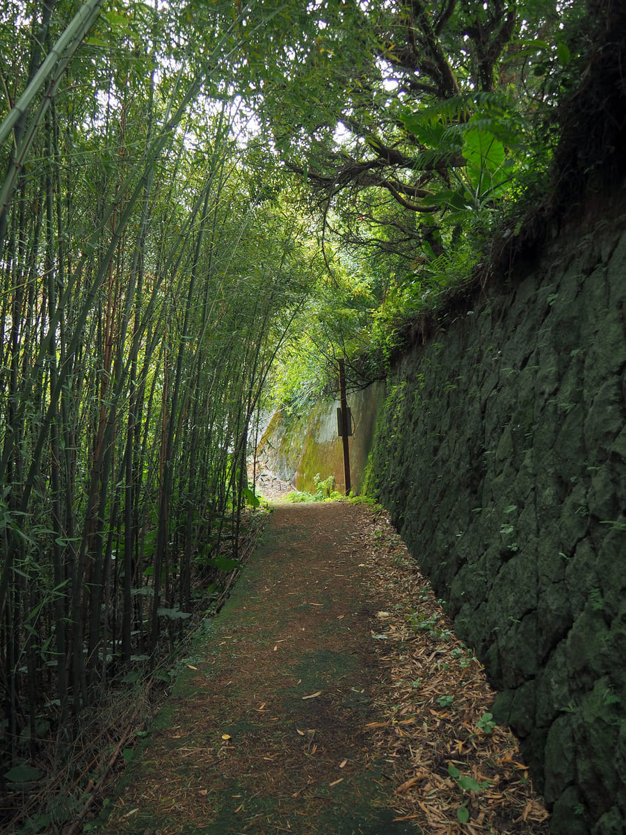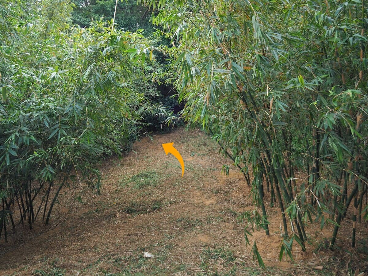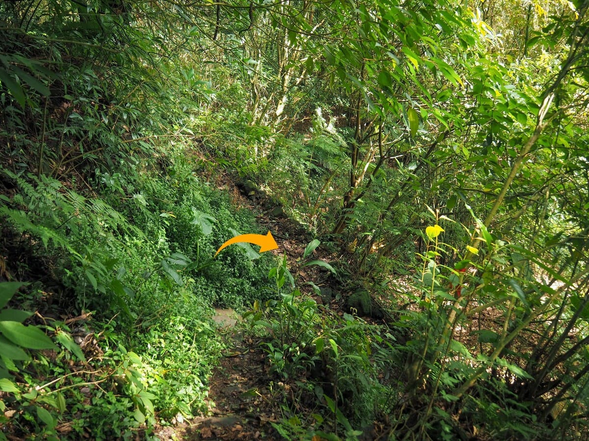 The path makes its way through a bamboo farm. At first, it looks like there’s no through trail, but just keep heading straight and you’ll find a trail leading away into the trees. A short while later, the path veers to the right.