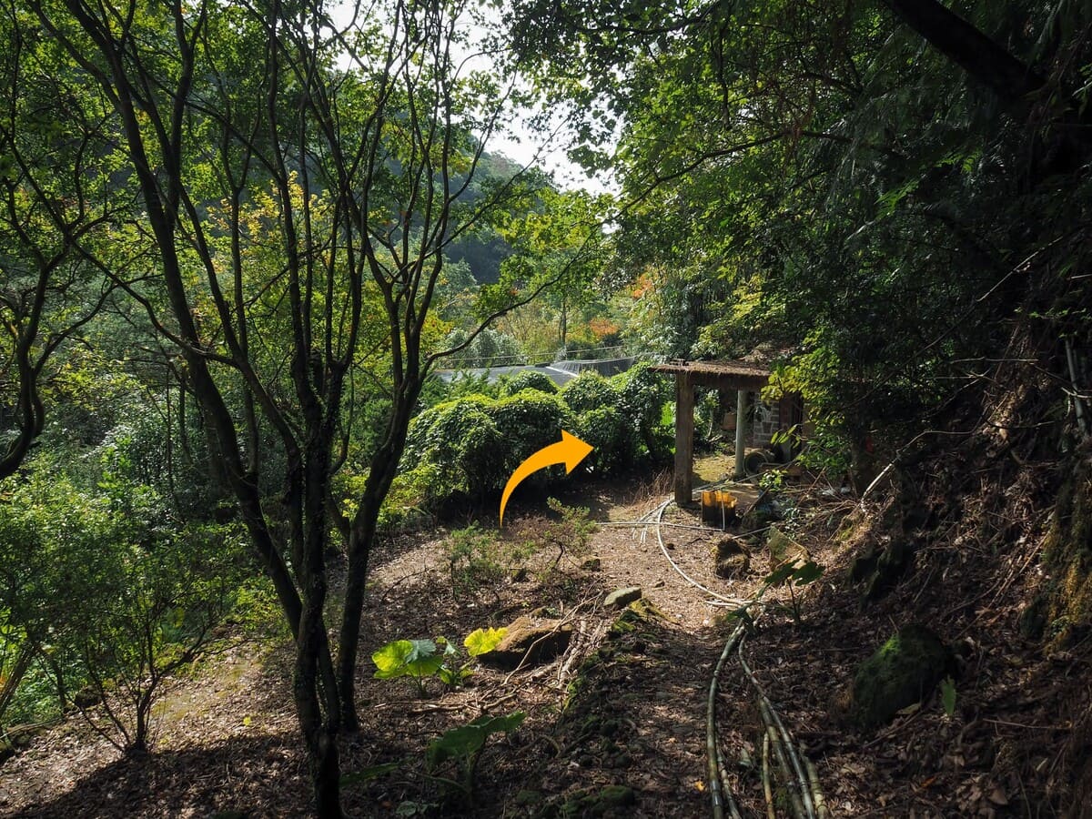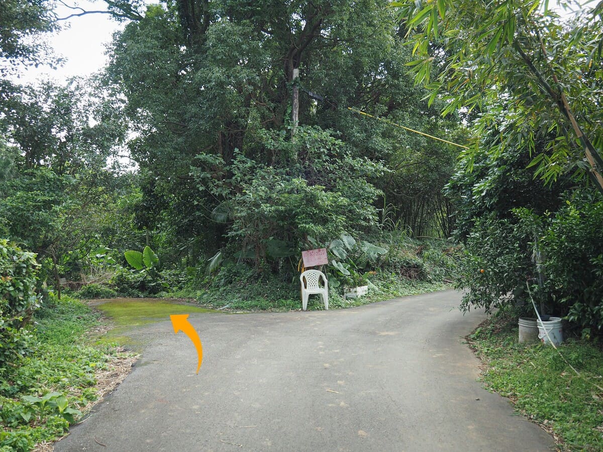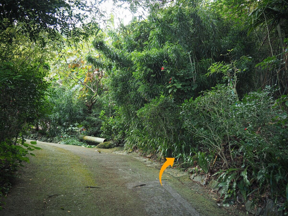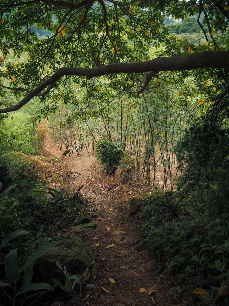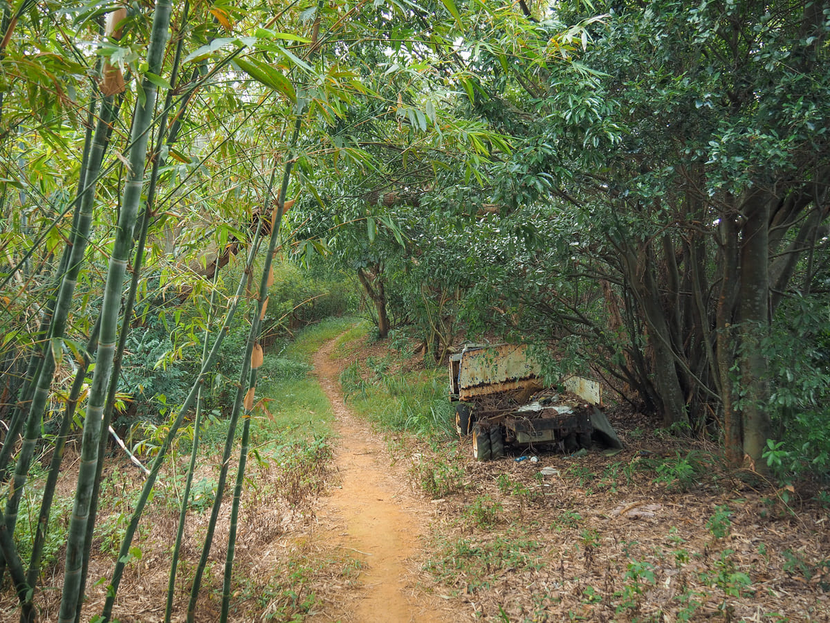 The path makes its way through a bamboo farm. At first, it looks like there’s no through trail, but just keep heading straight and you’ll find a trail leading away into the trees. A short while later, the path veers to the right.