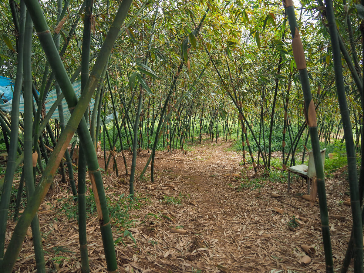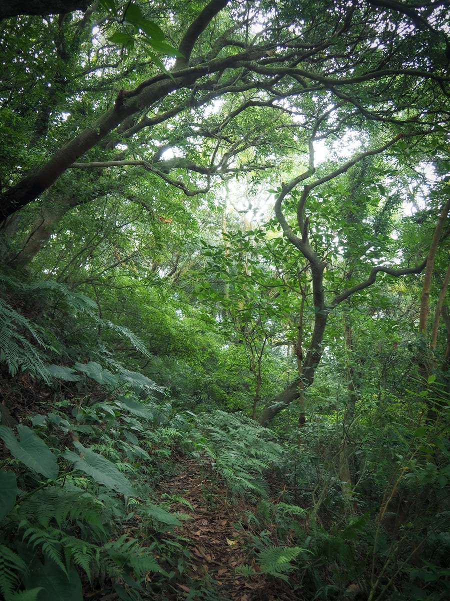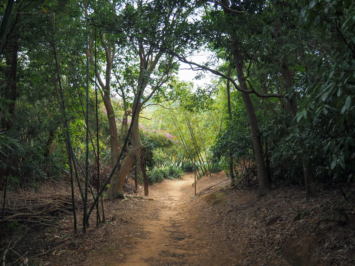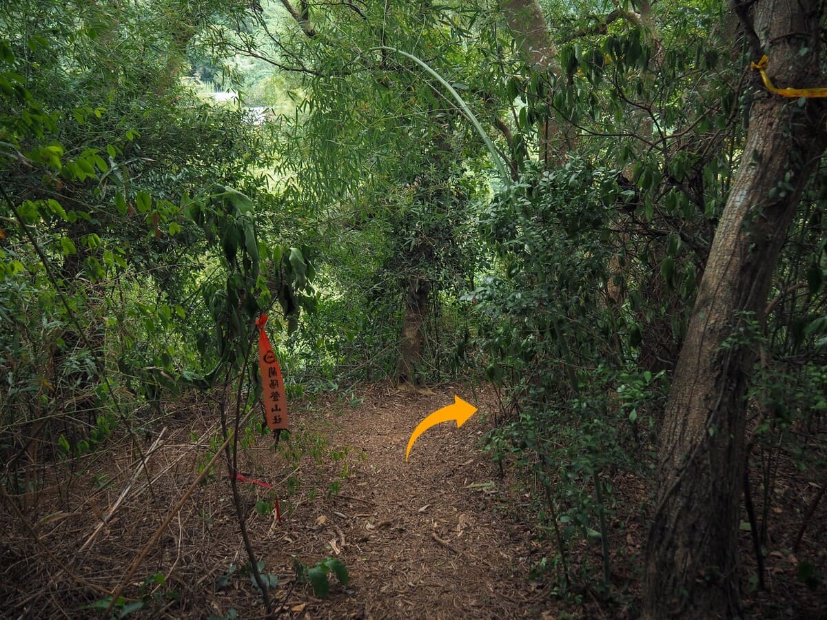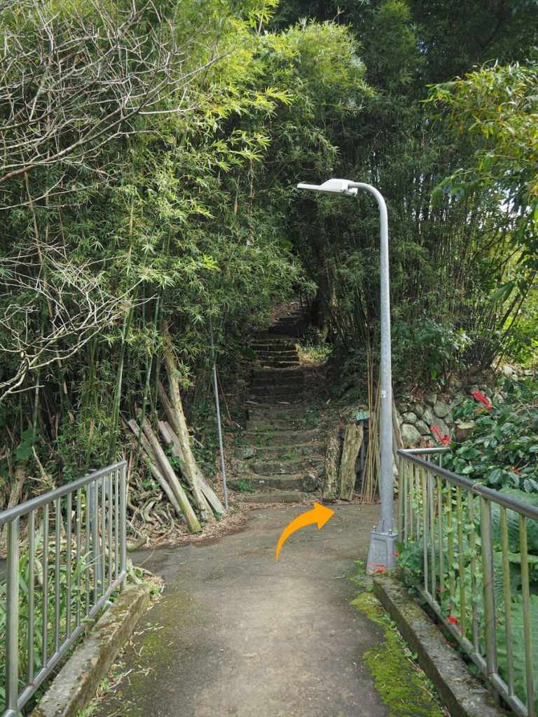 The path makes its way through a bamboo farm. At first, it looks like there’s no through trail, but just keep heading straight and you’ll find a trail leading away into the trees. A short while later, the path veers to the right.