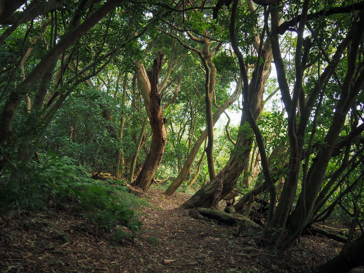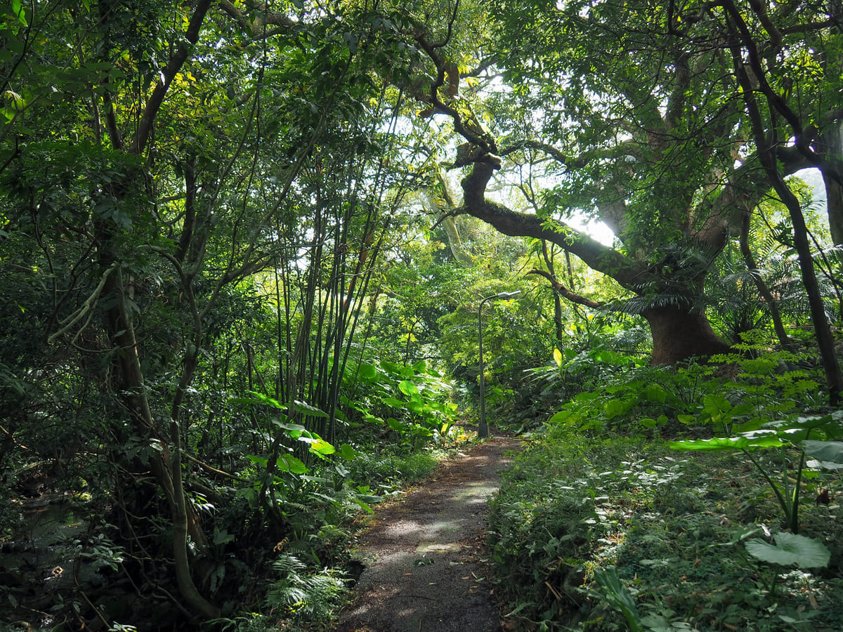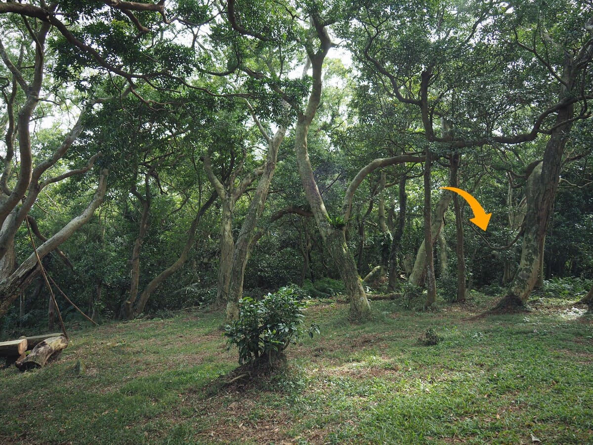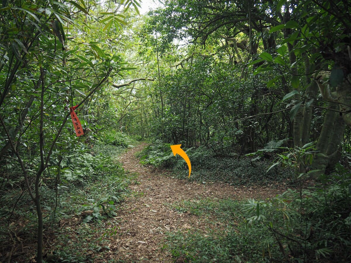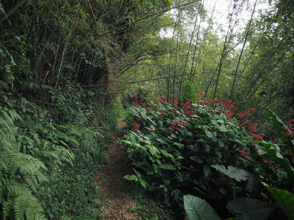 The path makes its way through a bamboo farm. At first, it looks like there’s no through trail, but just keep heading straight and you’ll find a trail leading away into the trees. A short while later, the path veers to the right.