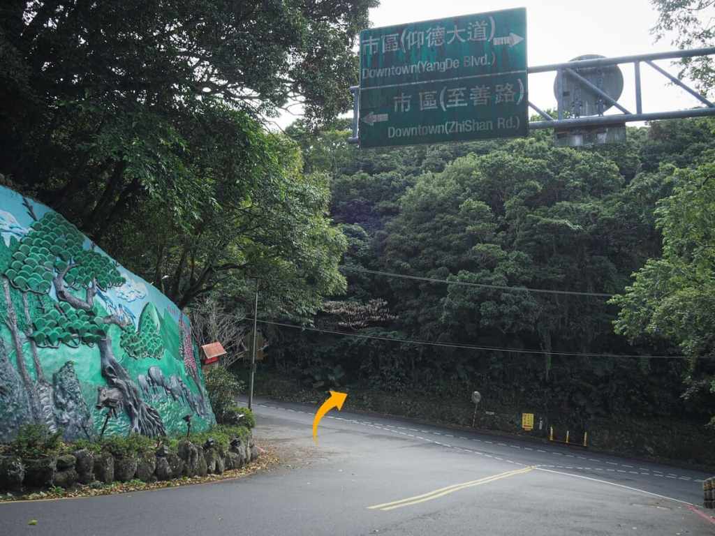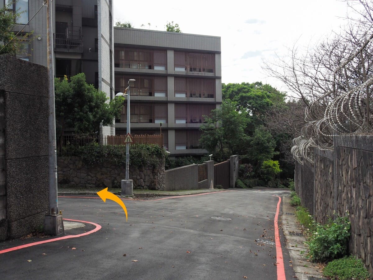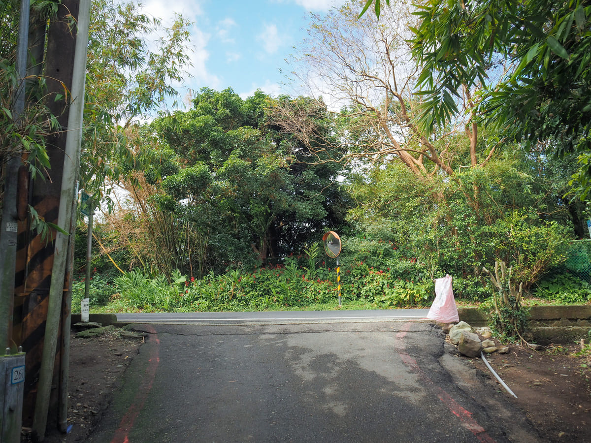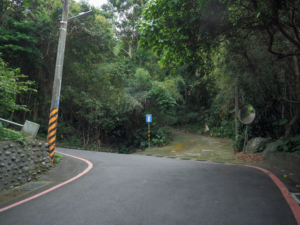 After another few minutes, the trail emerges at a right-angle bend on Zhongyong First Road, Lane 35. Turn right onto the road, then after about 100m, merge rightish onto Zhongyong First Street.