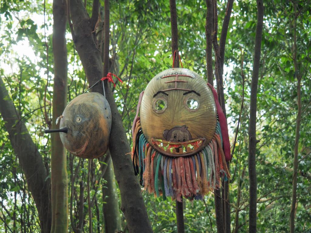 What was far more remarkable (not to mention unnerving) was this collection of clown masks fashioned from old scooter helmets that I found hanging from trees in the next clearing along the trail.