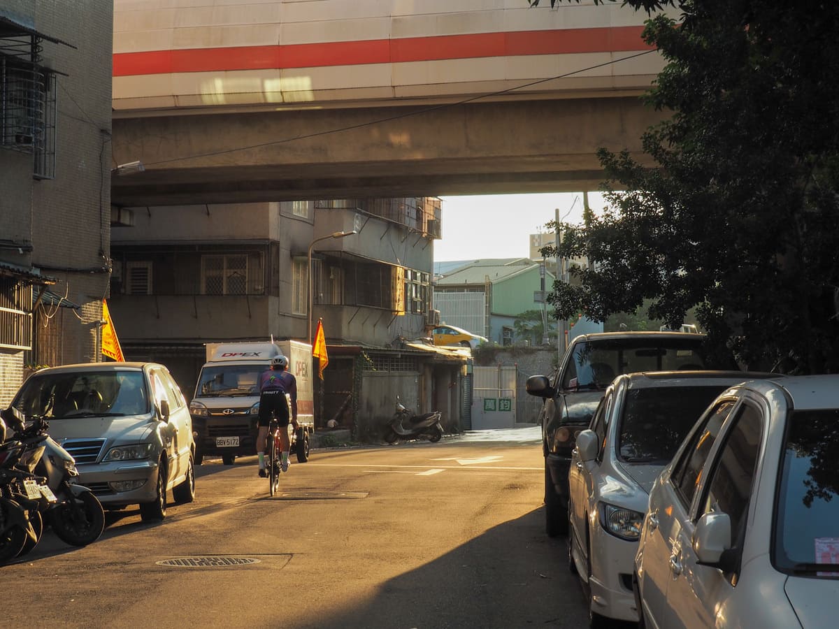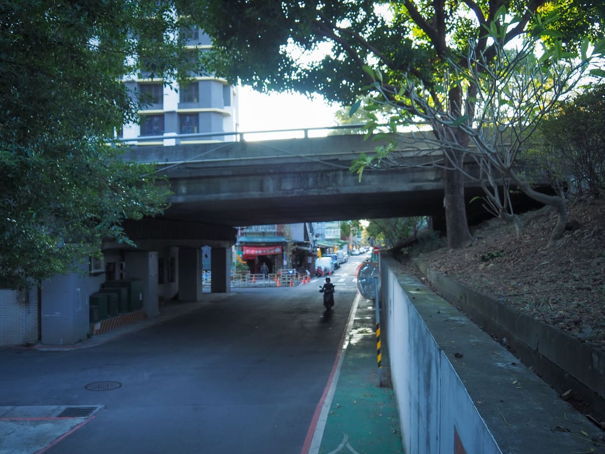 12:00 – The path spits you out for a minute somewhere around the back of Taipei European School. Keep on heading straight over past the rows of parked scooters and follow the lane until it reverts back to a trail again.