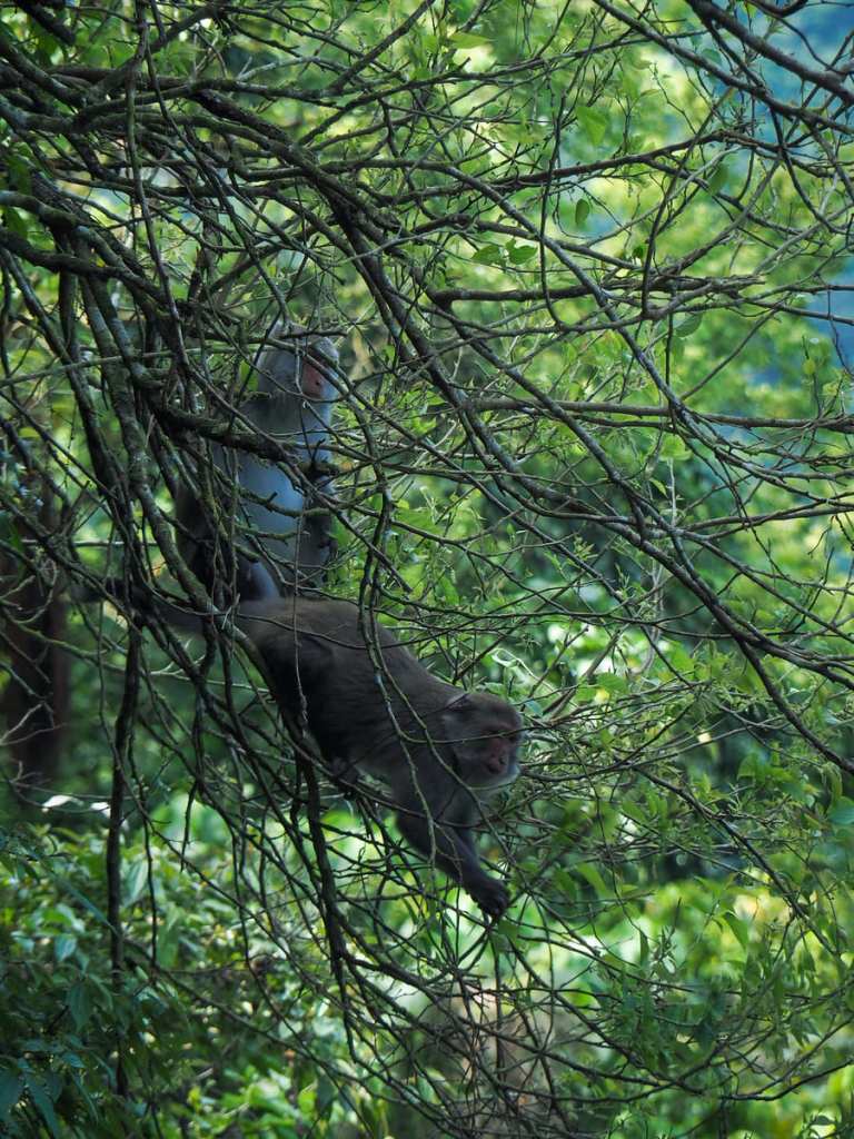 Close to the end of the pedestrian area, we encountered a small troupe of monkeys. Three of them were busily stripping the leaves off of this tree and stuffing their cheeks with them.