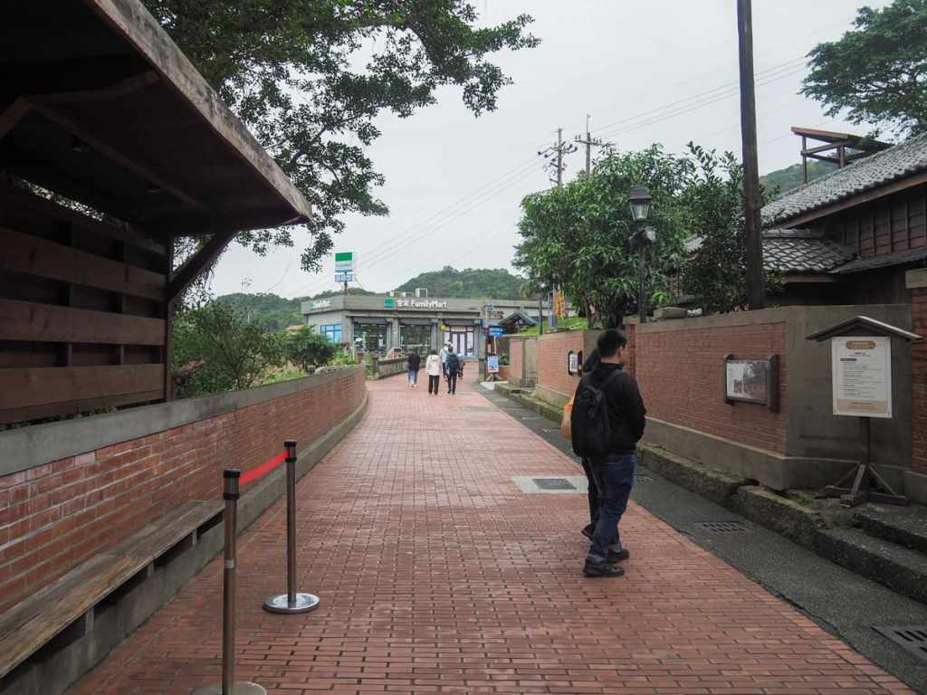 The roadway funnels you past a few cafes and restaurants (and a FamilyMart). There are toilets just to the left of the exhibition building’s front door, then follow the signs directing you towards the Shinto Shrine and Benshan Mine No.5.
