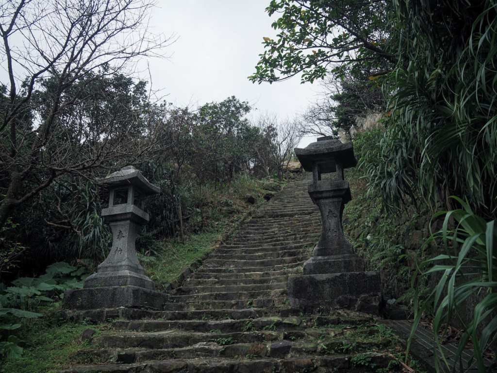 Just before you get to the museum buildings around Benshan Mine No. 5 there’s a flight of steps leading up on the right towards the old Shinto shrine.