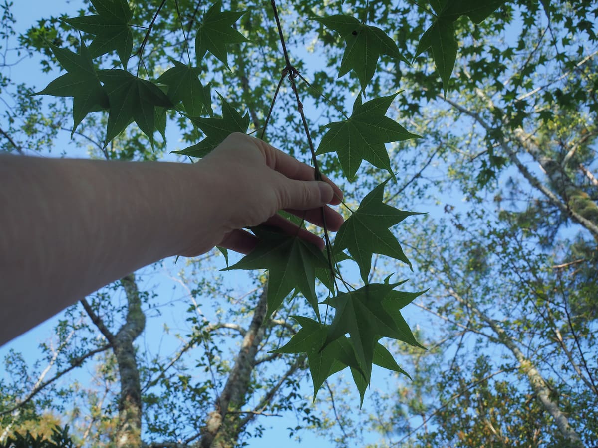 Layers of hills and sweet gum tree leaves.