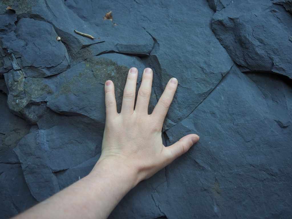 A huge hunk of the aforementioned slate beside the trail.