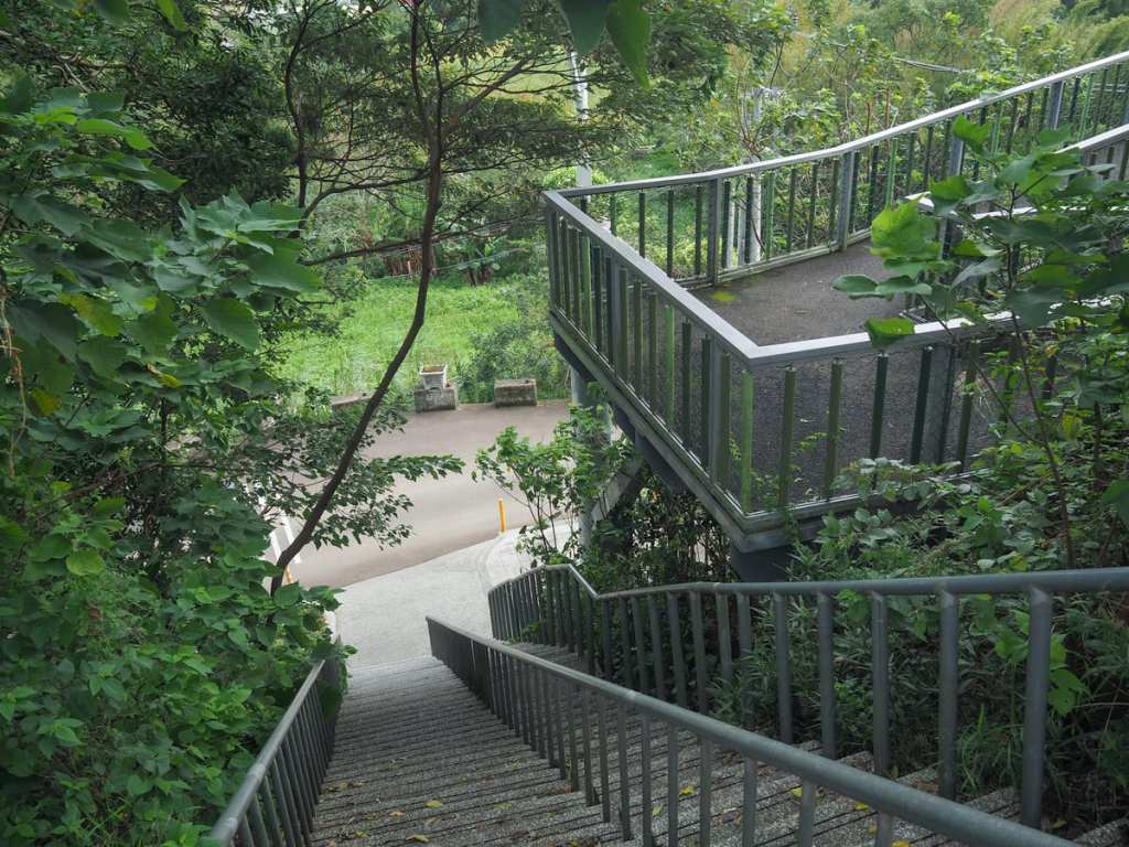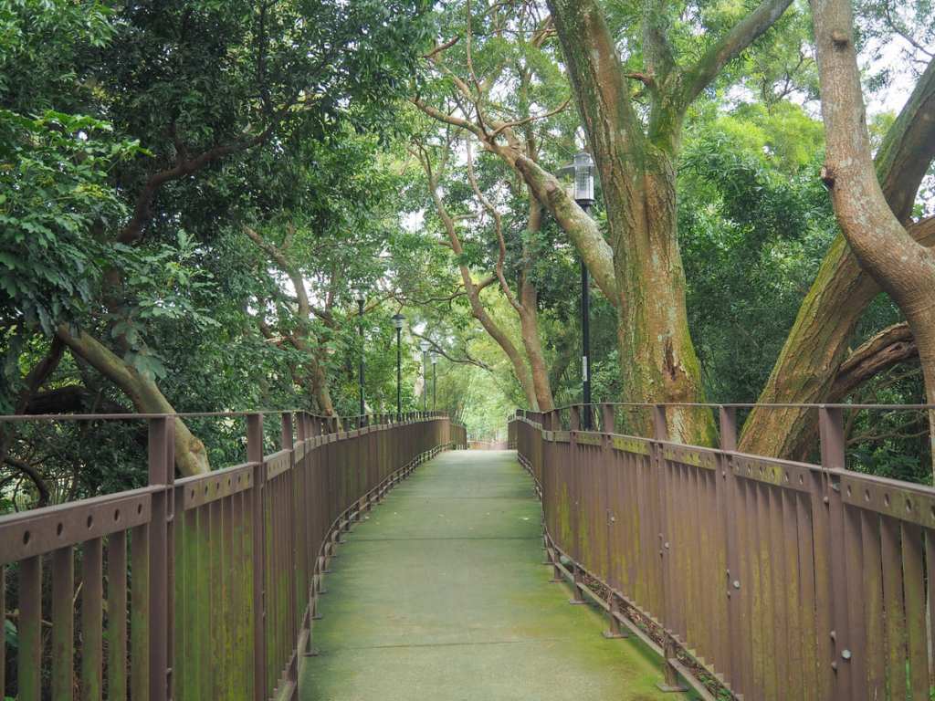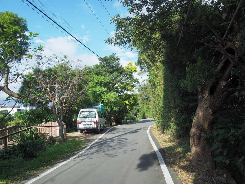 Look out for a wooden trail on the left leading down to a small area of parkland. This is Tongxue Historic Trail (通學古道). During the Japanese colonial period, this trail was used by students passing through on their way to Ruipi Elementary School.