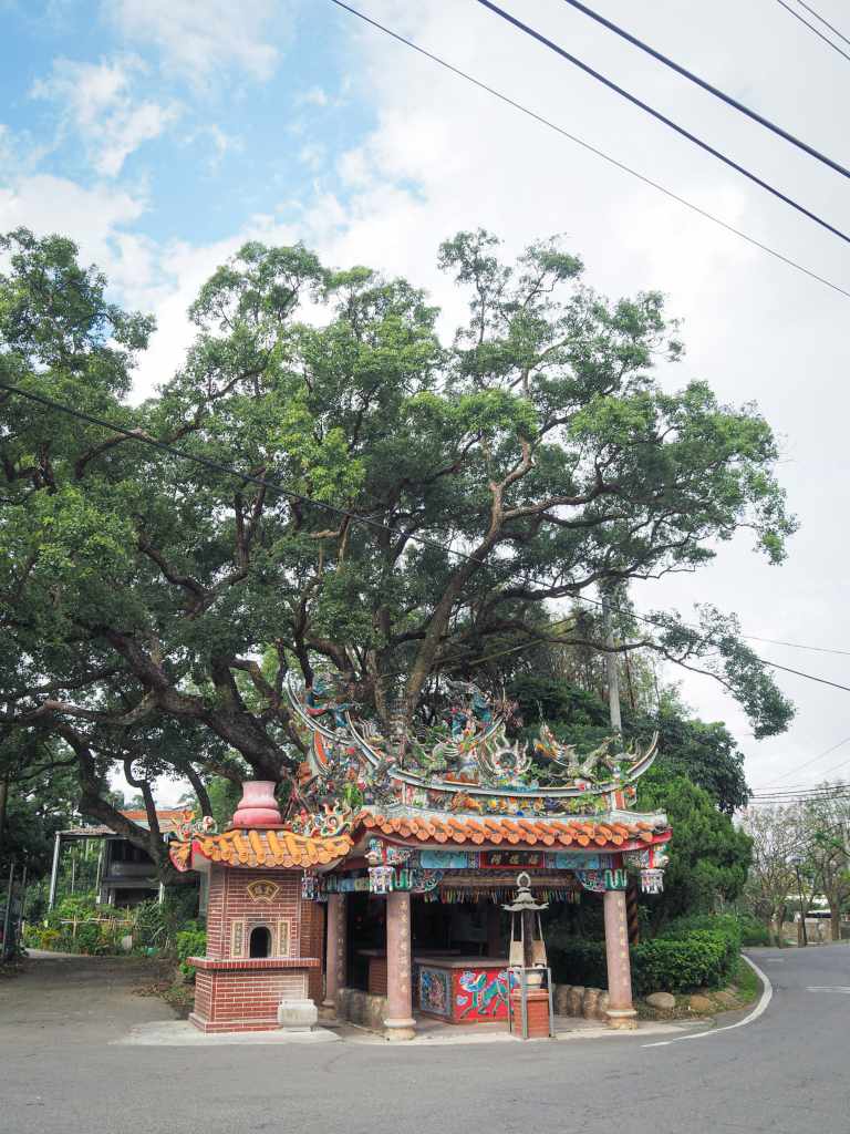 Zhennan Fude Temple commands attention. It stands near the junction of the bikeway, a road and a river, and is sheltered beneath the sprawling boughs of an ancient camphor tree. A faded magazine clipping has been posted to the temple’s interior wall and states that there are some in the community who believe it’s around 200 years old.