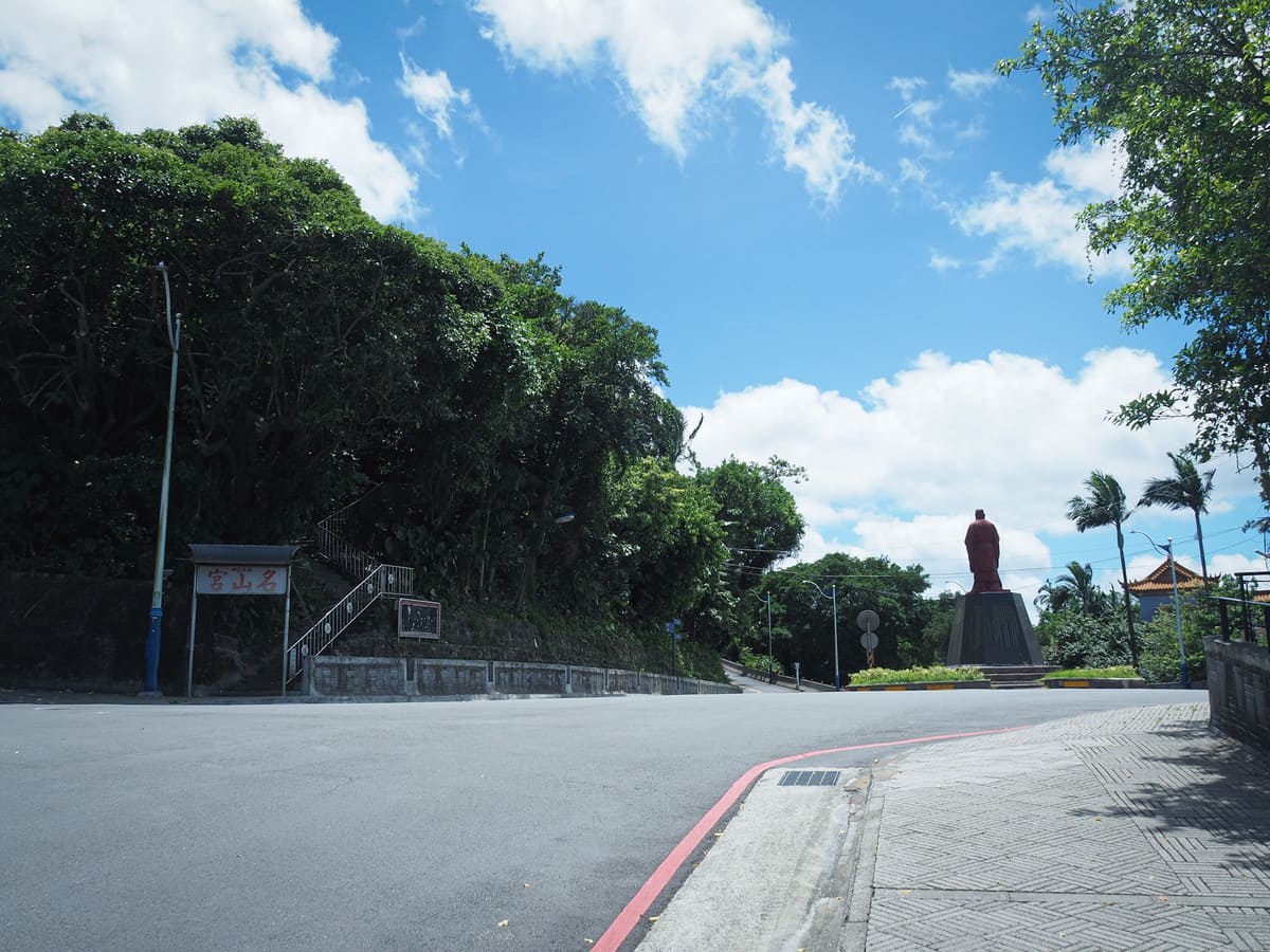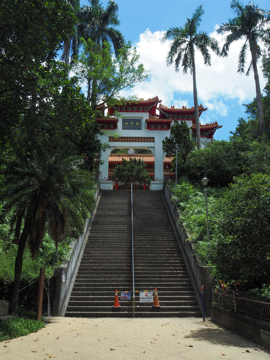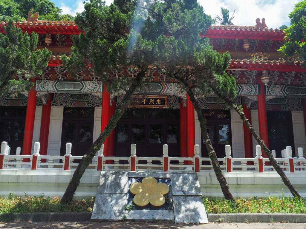 我稍微繞道去參觀忠烈祠。和台灣許多忠烈祠一樣,這裡原本是日治時期建造的神社,後來被蔣介石政府改建為紀念「為國犧牲的英勇將士」的紀念碑。原本的神社建於1912年,考量到所在位置,供奉的是保佑海上航行者和從事海洋相關行業人士的神祇。關於這個主題,我強力推薦喬許·艾利斯的文章。過去幾年他一直致力於用英文記錄台灣各地的忠烈祠。