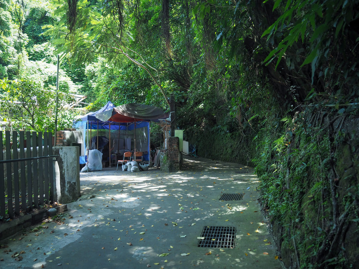 原本可以從神龕沿著步道前往主普壇,但似乎目前正在施工中,所以我只好原路折返到休息區,然後沿著左側的步道前進。步道經過一處公廁,繼續沿著山坡側邊延伸。