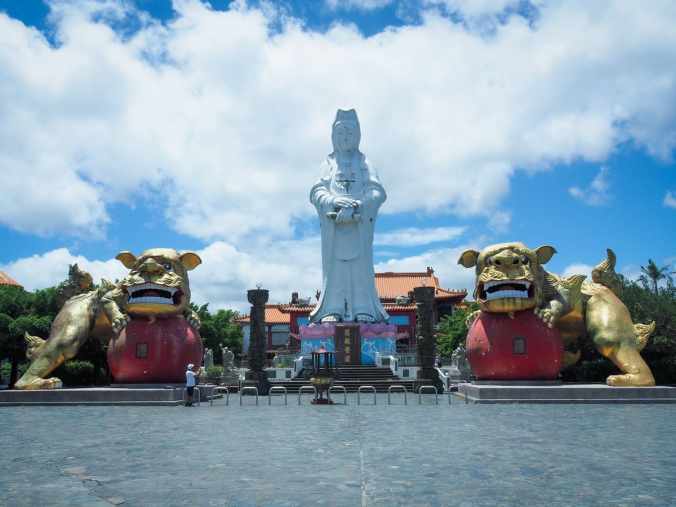從雕像和廟宇周圍聚集的遊客數量,也能明顯看出旅行團的到訪。這座22.5公尺高的觀音像兩側有威嚴的護法獅坐鎮,景象確實令人印象深刻。對當地居民來說,抬頭就能看見慈悲的觀音菩薩俯視著他們,想必是件令人安心的事。