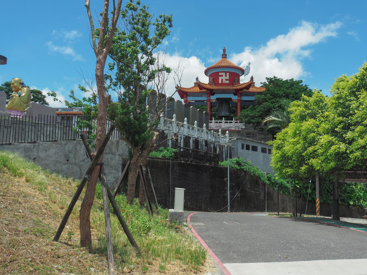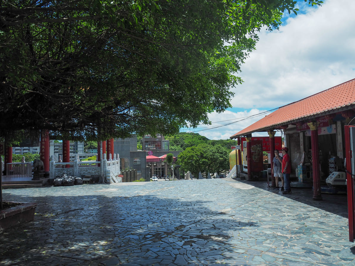 拾級而上來到主普壇宏偉建築前的大片開放廣場。這裡是每年大型宗教慶典的舉辦地點。在農曆七月十五日晚上,這裡會擺放豐盛的供品,標誌著鬼門開啟。鬼月在台灣是一件大事,相關慶典更是不容馬虎。我還沒參加過基隆的中元祭典,但希望有朝一日能夠參與。