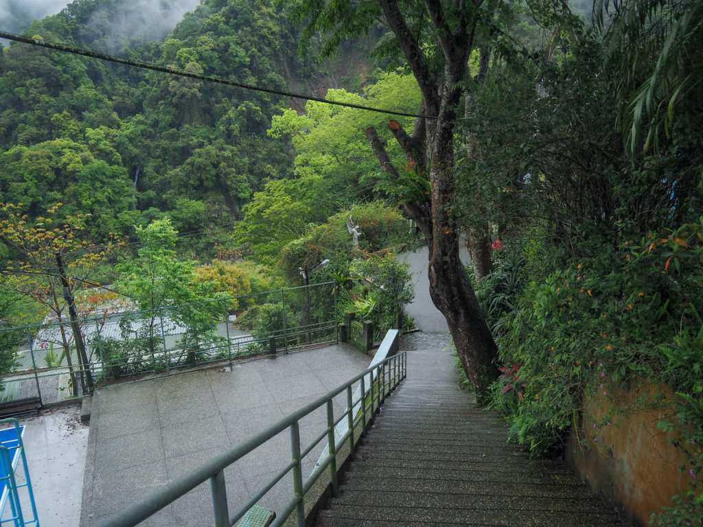 離開學校後,我們順著往溫泉池的指示牌,沿著有些簡陋的階梯往上走。