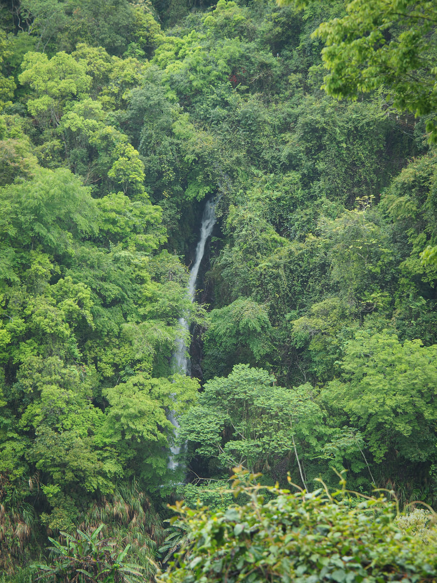 繼續往下走,對岸清泉瀑布的水聲清楚地迴盪在山谷間。走到階梯底部後我們右轉,很快就回到了停車場。