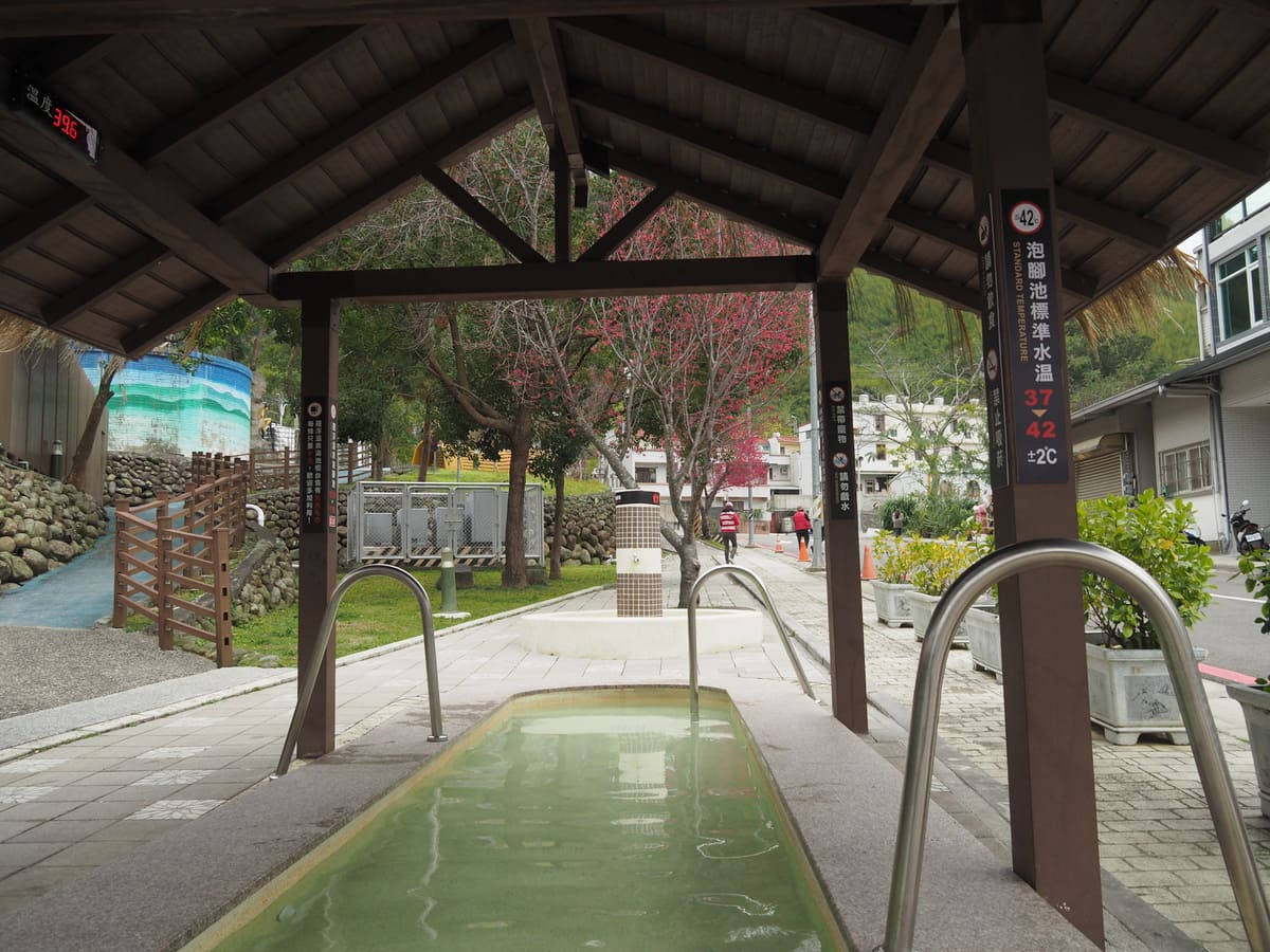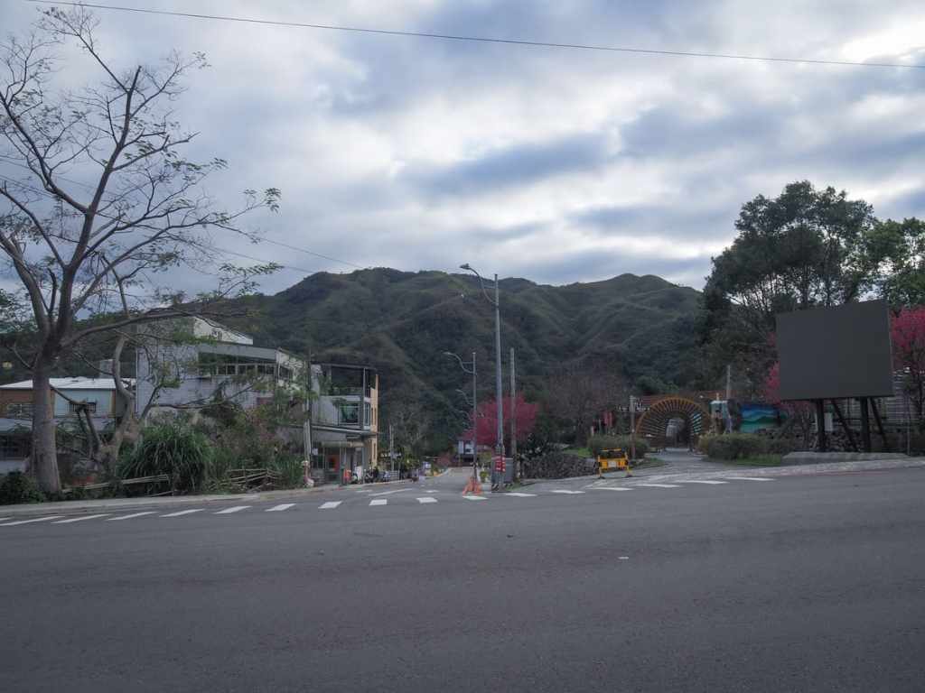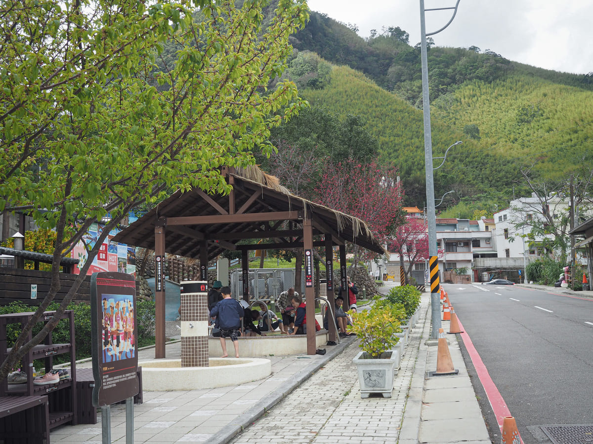 從7-11出來後,我沿著道路走到下一個路口,按照木製指示牌的方向前往溫泉池及遊客中心。