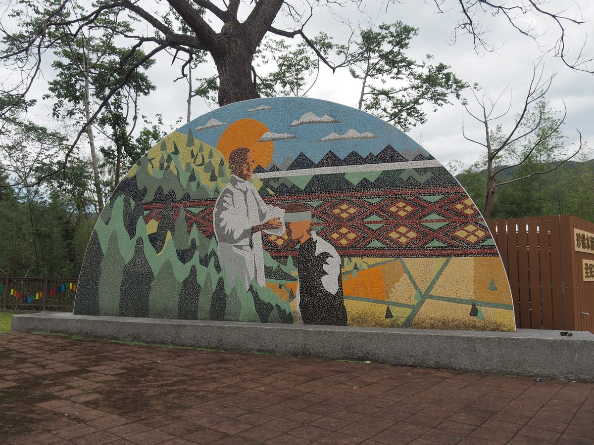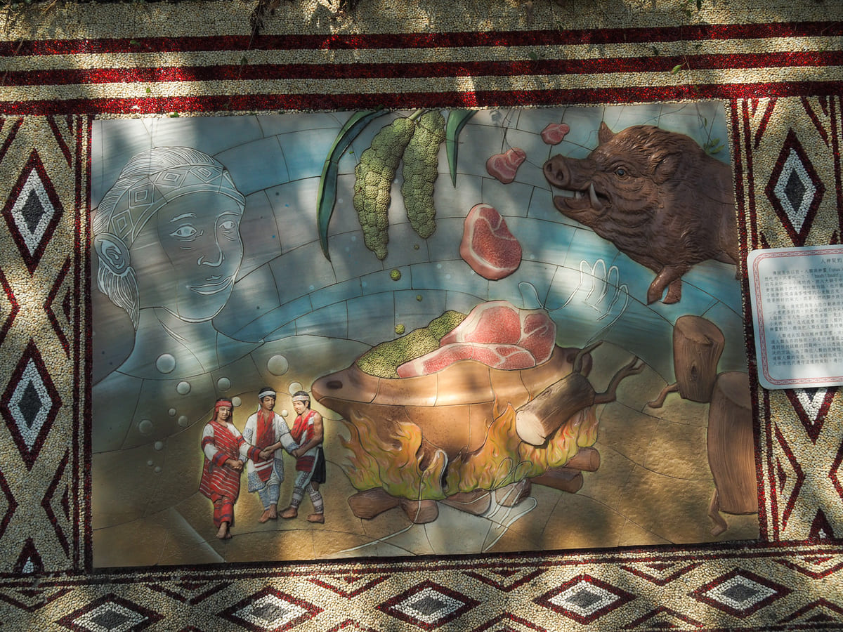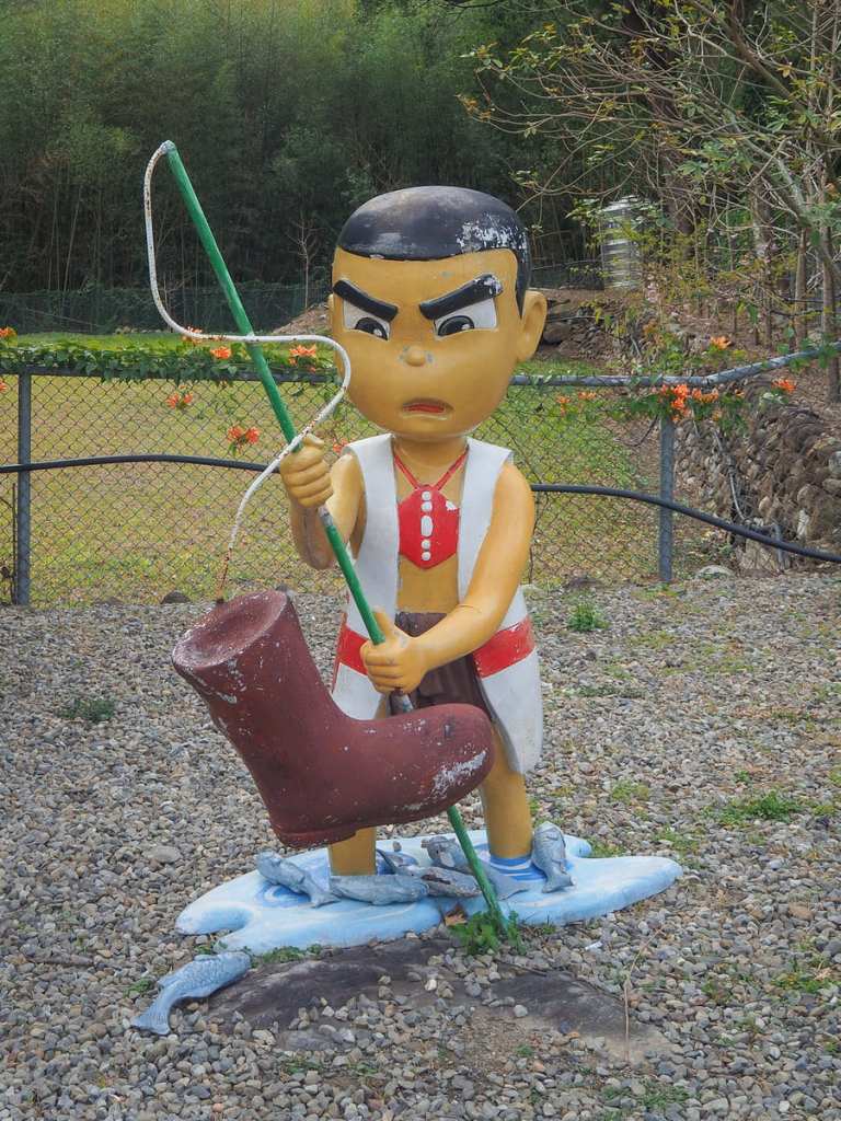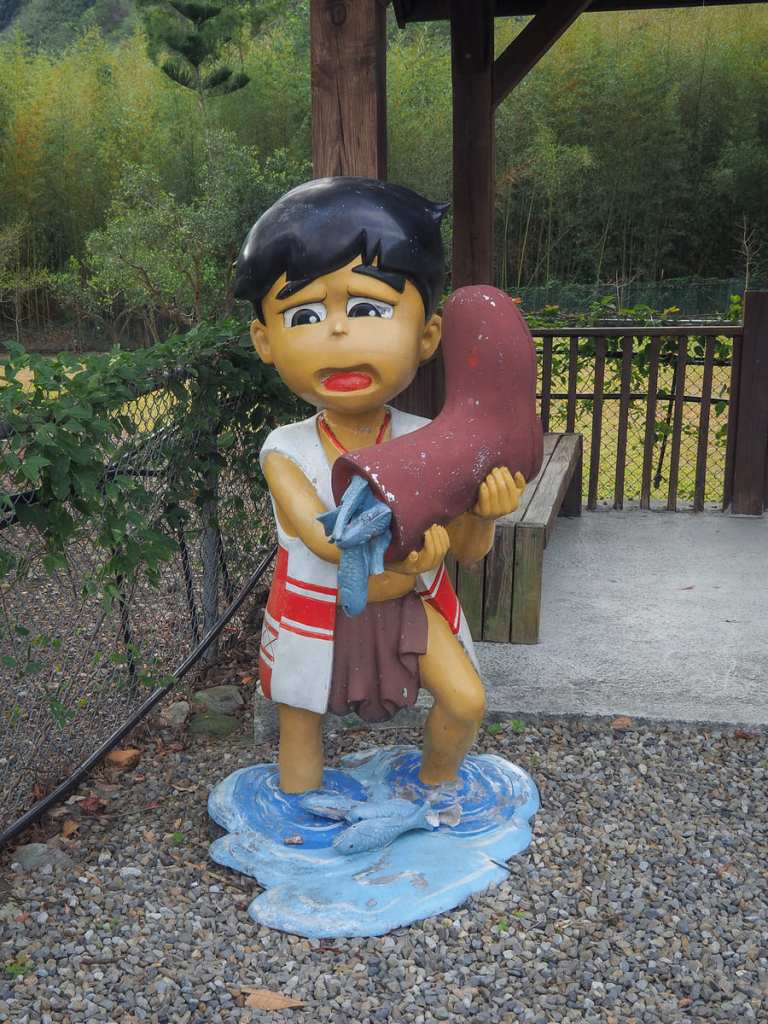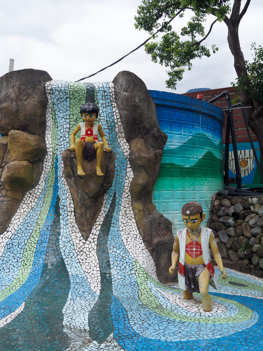 這裡有幾座可愛的雕像,描繪泰雅族男孩穿著靴子捕魚的情景,另外還有一座造型奇特的雕像……老實說,我也沒看懂那究竟是在描繪什麼。
