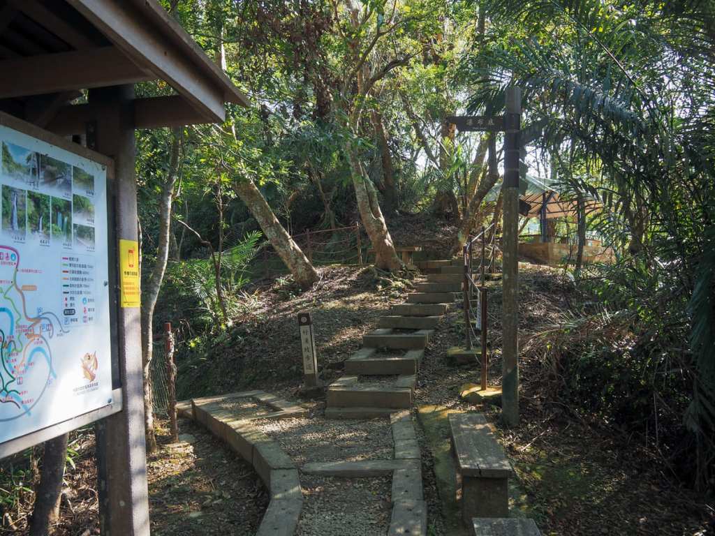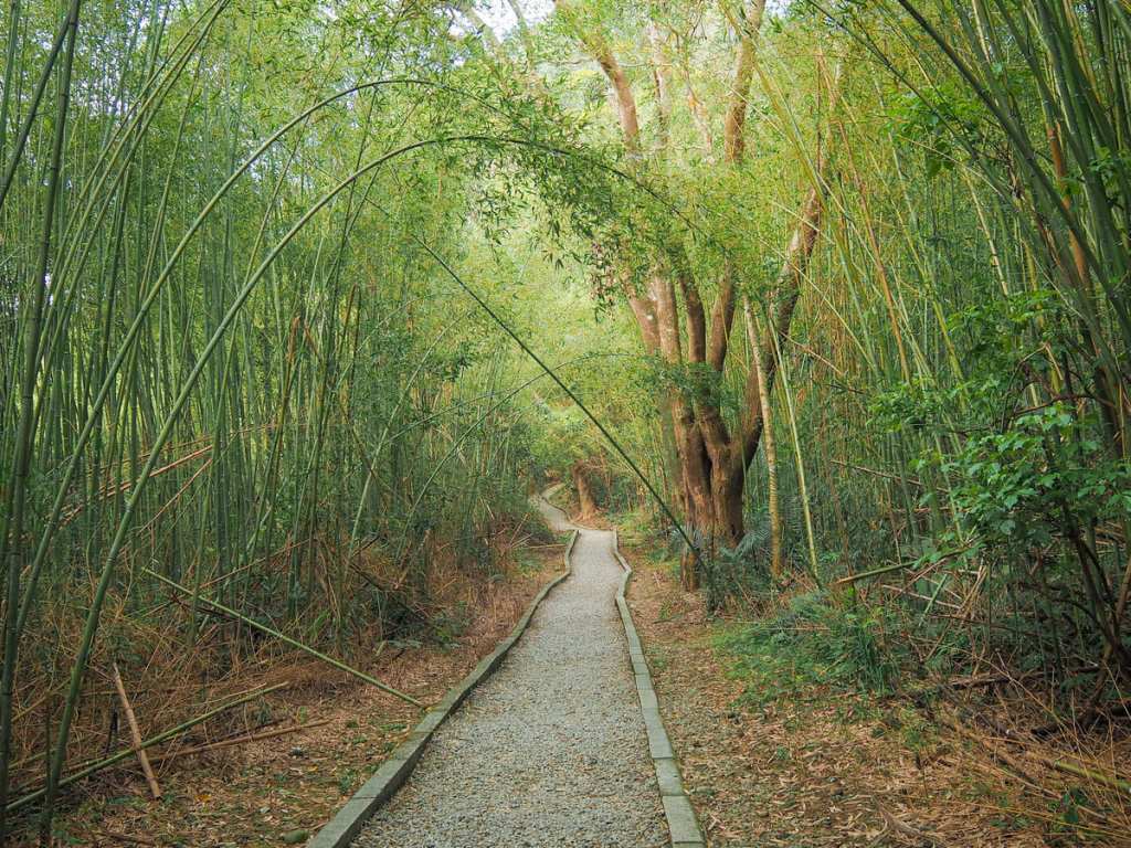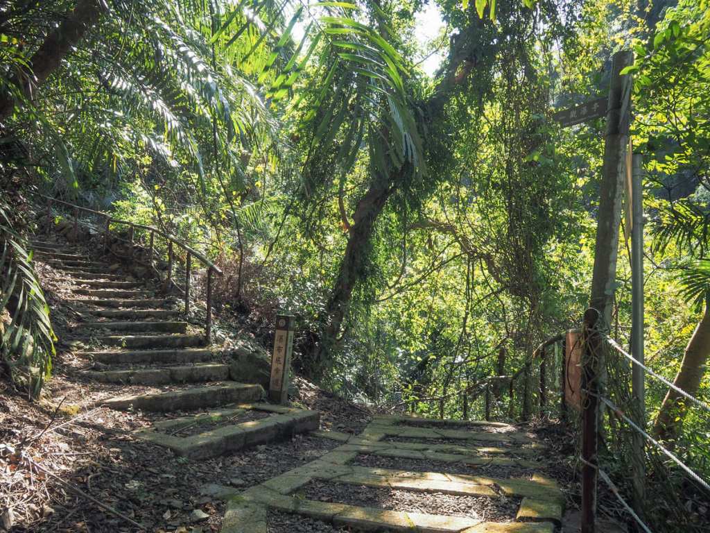 平安抵達對岸後,通往竹林的石階一眼就能看到。這段路稱為舊水圳古道,因為這裡過去曾挖有水渠,用來灌溉原住民村民的農田。如今,昔日的水渠已被一般水管所取代,這些水管在步道的幾處橫穿而過。