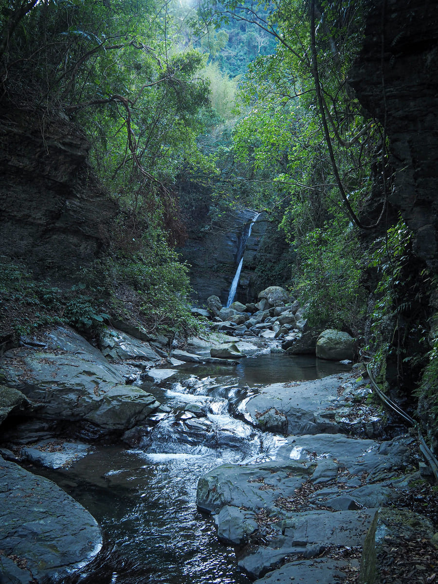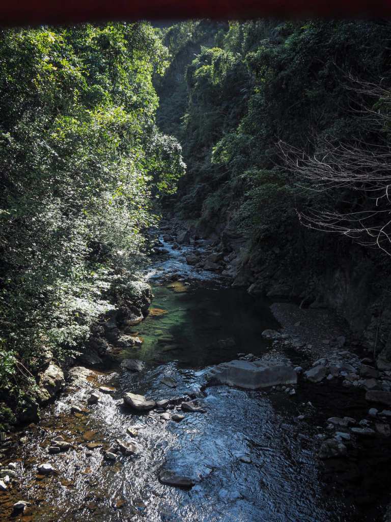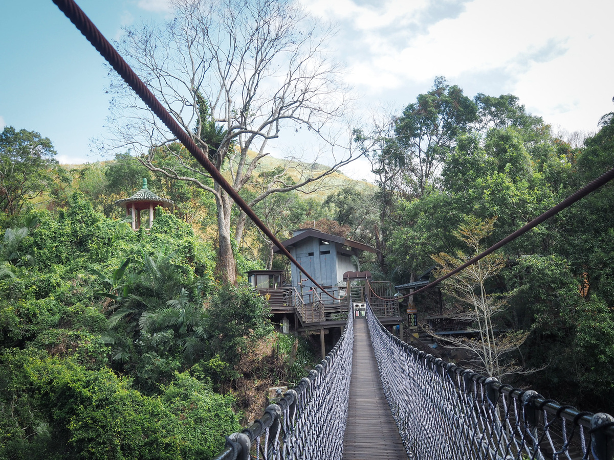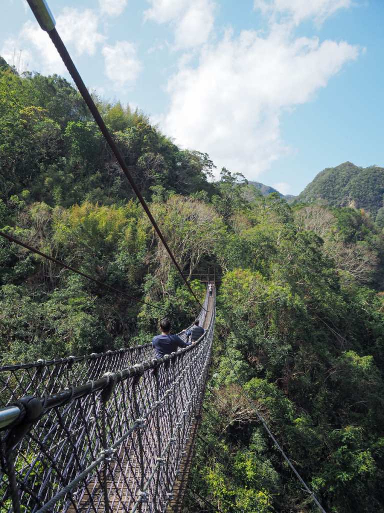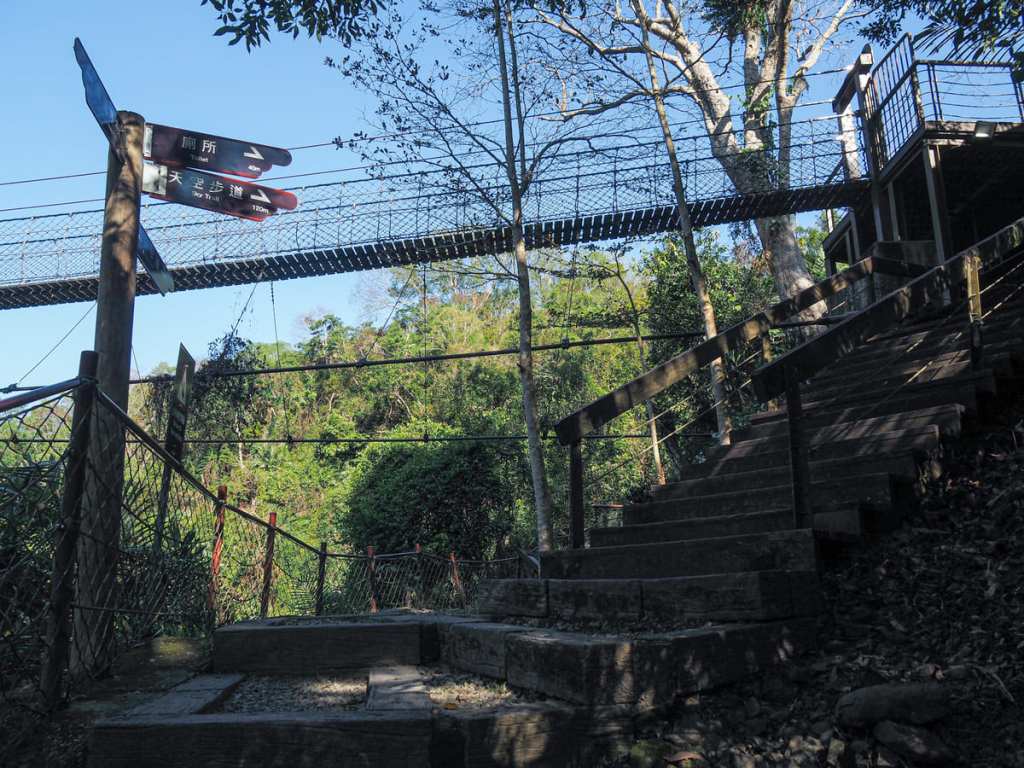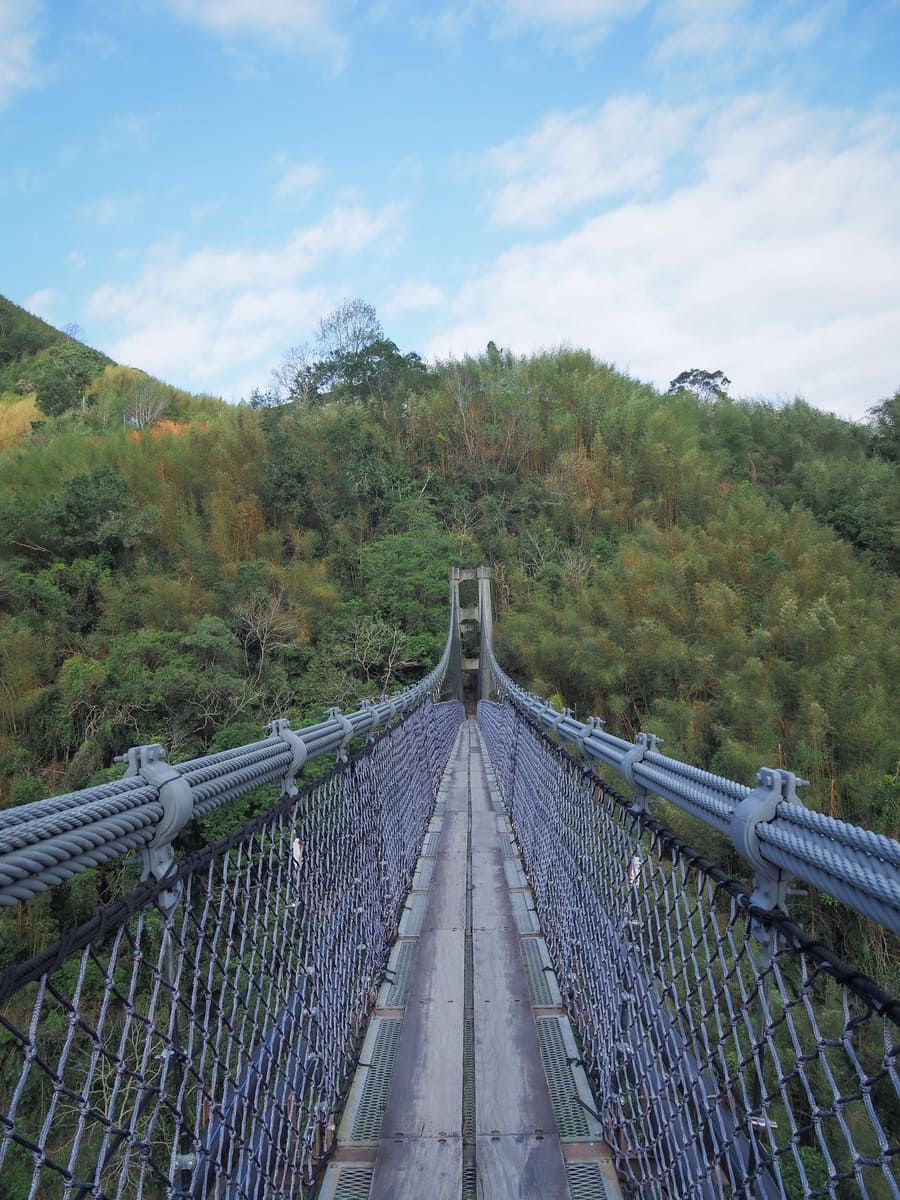 這座繩橋比義興吊橋短得多,但從我前方那群人的反應來看,對於懼高的人來說,橋的高度依然足以令人膽戰心驚。若你夠大膽往下看,或許能瞥見橋下深處那座隱密的神祕瀑布。
